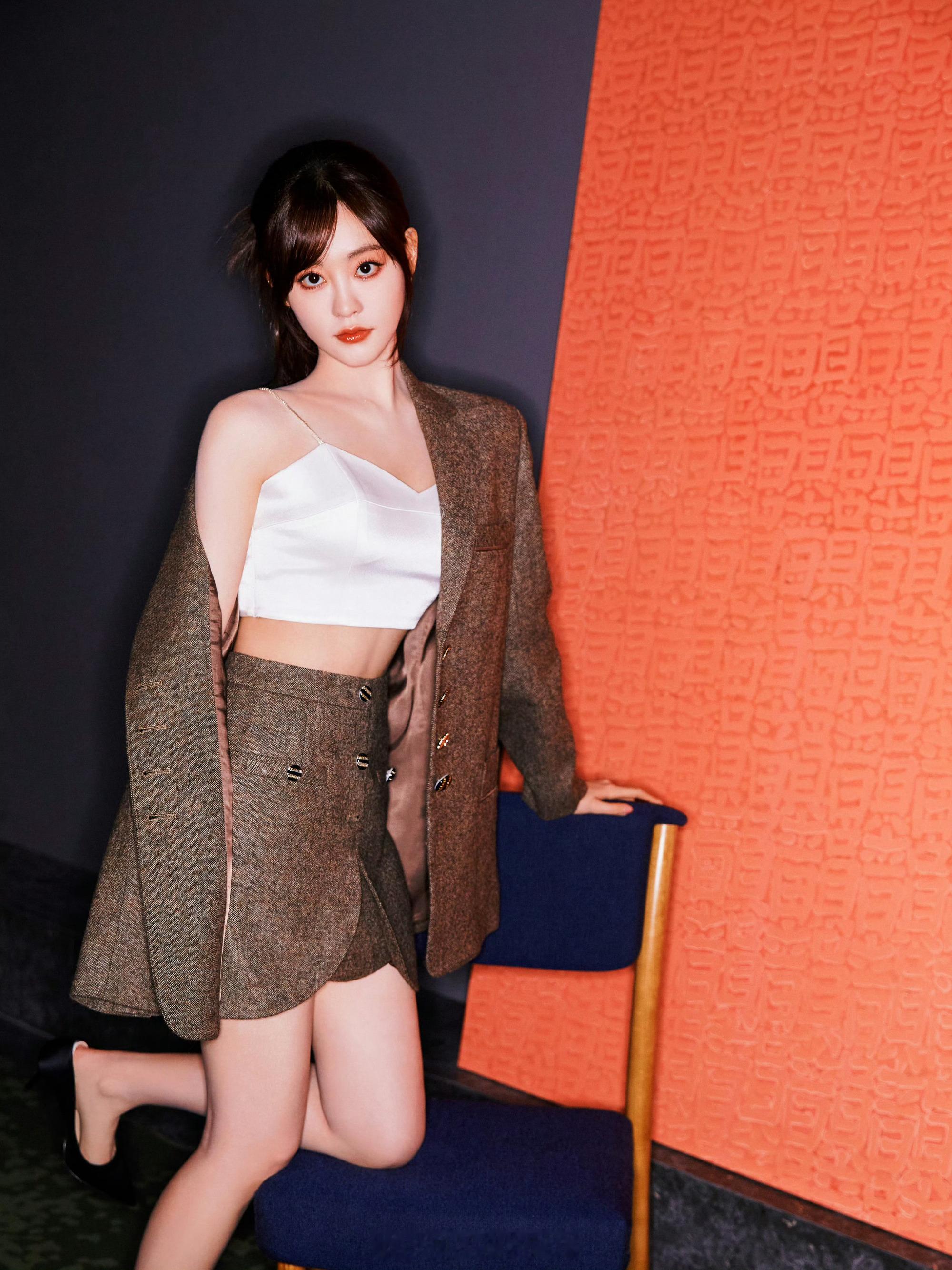 刘亦菲把死亡玫粉穿出了定制款的感觉,这种颜色普通人穿上分分钟黑三度,她居然能穿出