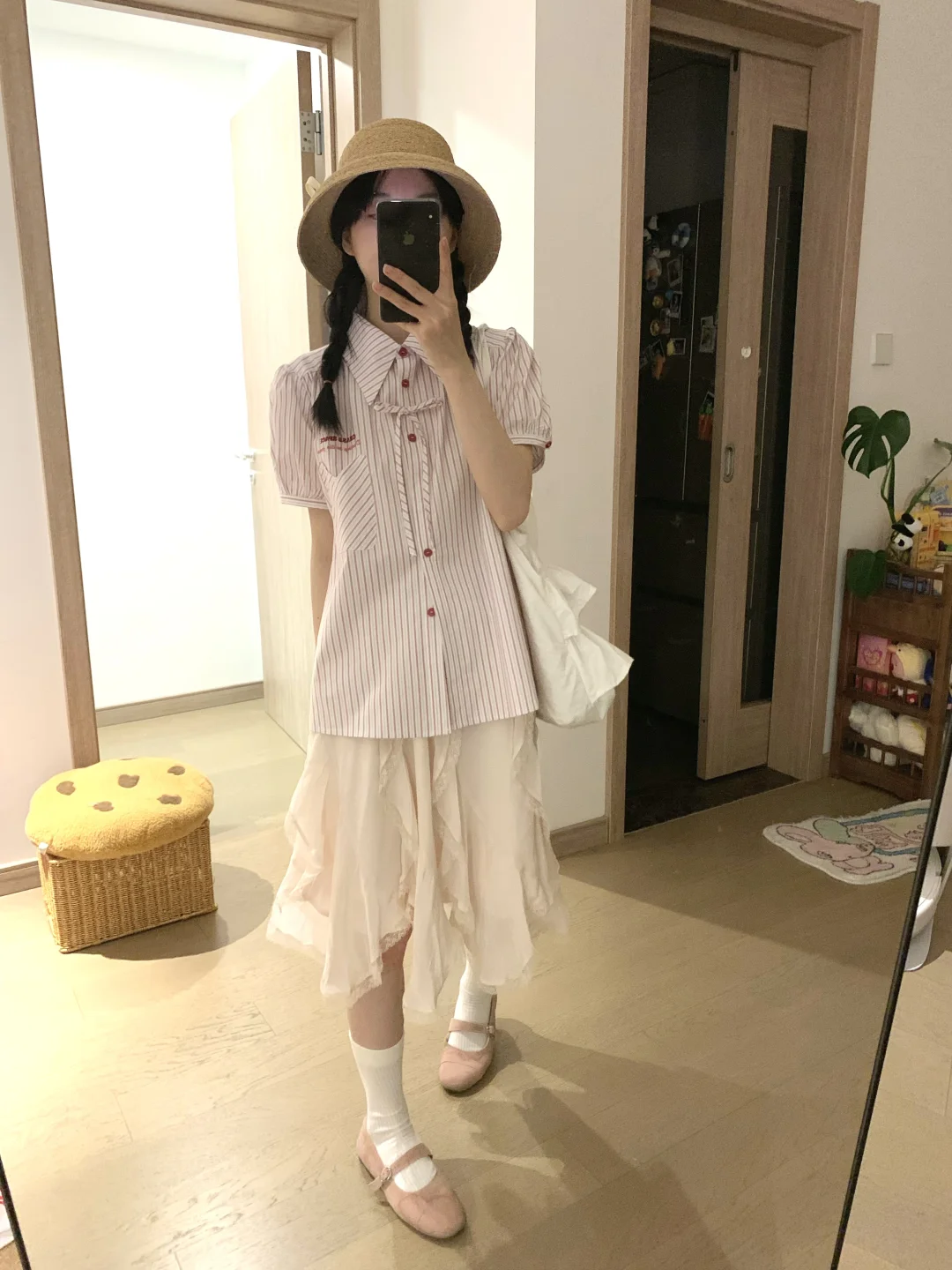 夏日清新穿搭,条纹背心+高腰短裤,轻松自在,元气满满!🌞👗💃