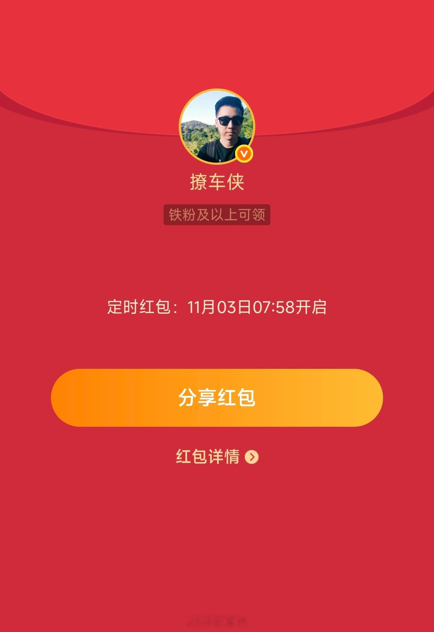 周一铁粉专属红包🧧7点58分开限量88个先到先得撩车侠的红包