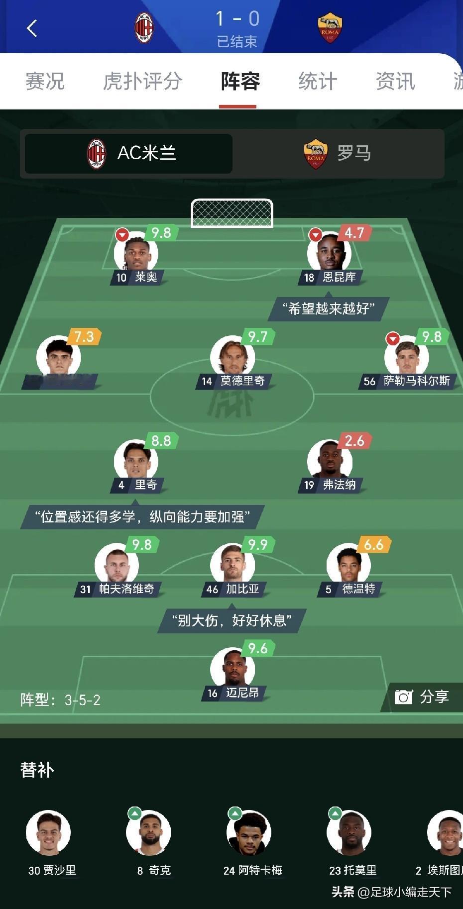 你别说,米兰现在还就需要阿莱格里式胜利,米兰现在需要的不是场面好看,而是小胜拿3分。 1.我心中米兰这场mvp是加比亚。加比亚这场数不清多少个解围了,只要看见防守上的是加比亚,就不担心漏顶之类的,稳的一匹。本赛季意籍中卫表现最好的,甚至可以说没有之一。 2.本来以为特奥走了就没有左路一条龙了,没想到这赛季帕夫给续上了,每场都有两三次从后场直捣黄龙式的前插,而且和特奥抱着边路的前插不同,帕夫前插的时候还知道啥时候该往中路切,进的那球就是。 3.里奇还是没适应左中前卫的站位,位置跑重和没给后场左路提供出球点的情况发生了好几次,尤其上半场他这一片更是风声鹤唳。反而是几次和莫德里奇换位之后表现还行。自家孩子多担待吧,起码首发这几场的球场覆盖给够了的,几乎每场都是本队跑动第一。 4.恩昆库确实有点东西,灵光一闪那一下很天才,比如右路有一次被两人围抢,被他两步调整居然带出来了,还有莱奥射空门那一下,出发点也来源他的妙传。缺点就是太懒了,只会压迫眼前的持球队员,几乎不会去防出球路线。 反正赢了就是好事,继续加油!!