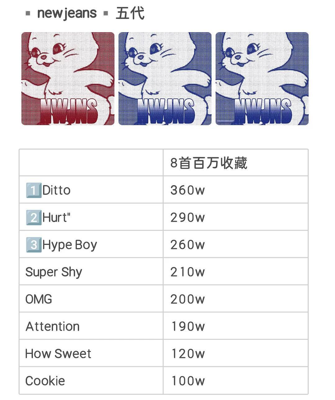五代女团QQ音乐百万收藏五团一好像是aespa不是newjeans吧?