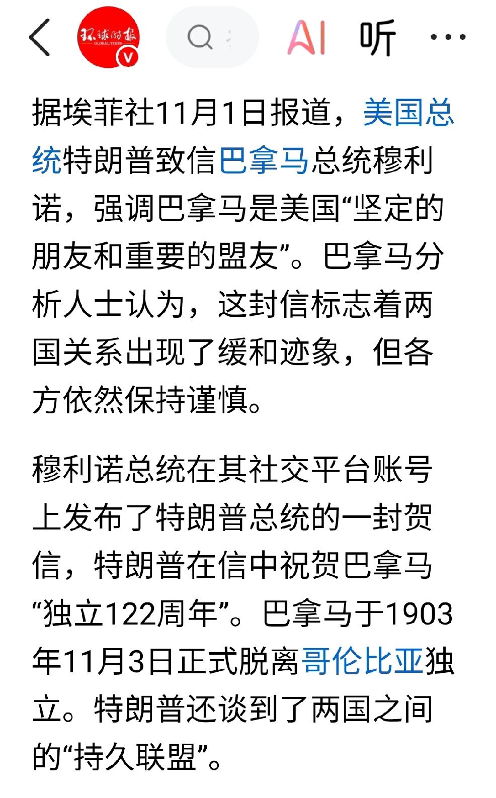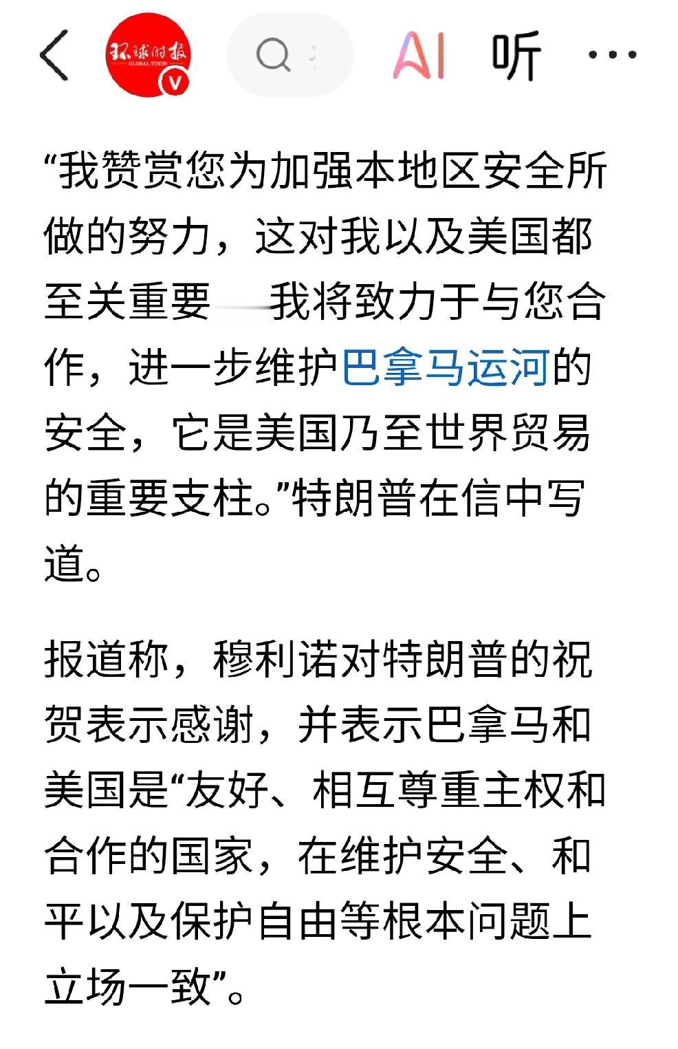 误会:特朗普又会向谁开战? 个人观点:误会了,看了标题又认为:特朗普在社交媒体上又要进行战争指挥了。不是要进行战争,而是与巴拿马套近乎,拉交情,个人认为这又是针对中国航运方面的一个策略,刚刚走出第一步的策略。看来,美国总统特朗普明显加快了出牌的速度,打扑克牌又开了一把,提高了速度。