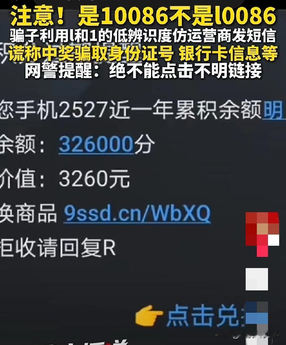 多人被骗!“I0086”不是“10086”! 警惕积分兑换短 信 热点 诈骗 积分兑换 你敢信吗?就差一个字符,有人直接被卷走近八千块。北京的杨先生上周就栽了这个跟头,手机弹出条“10086”发来的短信,说他的手机号积分要清零,能兑换空气炸锅。他天天用这个号码,对10086的官方通知从没怀疑过,手指一点就点开了附带的链接。 页面跳出来看着特正规,标着“掌上营业厅”,和他平时查话费的界面几乎没差。系统提示要填个人信息,他没多想,连信用卡号、交易密码甚至卡背后的安全码都一一输了进去。后来页面又让下载“安全控件”,说这样才能完成兑换,他跟着操作完还没等反应过来,手机连续收到三条消费短信,信用卡里的7739元全没了 。杨先生当时腿都软了,赶紧打10086客服,才知道自己看走了眼——那个发送号码根本不是“10086”,第一个字符是小写英文字母“l”,不是数字“1”。 为啥这么多人栽在这一个坑里?公安部网安局早就说过,这是骗子专门设计的视觉陷阱。在手机短信的小字体里,“l”和“1”的相似度超过90%,肉眼几乎没法分辨。更可恨的是,这些短信根本不是运营商发的,是骗子用伪基站设备强行覆盖周边信号群发的。黑龙江曾查获过一起案子,伪基站两天就发了26万条诈骗短信,波及范围广得吓人。 骗局可不只号码伪装这一招。点进链接后的钓鱼网站才是真正的陷阱。浙江的钱先生之前收到“积分兑换270元现金”的短信,点进去填完银行卡信息,卡里7948元当天就被转空了。猎豹移动的安全实验室统计过,这类假冒10086的钓鱼网站半年涨了近6倍,每天平均有2000人受害,算下来损失早超6000万元了,单一个钓鱼网站后台就存着3.5万条银行卡资料。有些网站还会让下载“安全控件”,那根本不是什么保护工具,是能偷取手机里所有数据的木马程序。 更值得深思的是,这种“形近字符诈骗”早有前车之鉴。我国车牌号里根本不许用字母“O”和“I”,就是因为它们容易和数字“0”“1”混淆,连交通监控设备都能认错,误识率能飙到3.2%。骗子恰恰盯上了这个视觉漏洞,再加上大家对10086这类官方号码的天然信任,骗局成功率才会这么高。很多受害者不是不小心,是骗子把“官方信任”当成了作案工具,这种利用公共机构公信力的诈骗,比普通骗局更让人防不胜防。 这里必须说清楚一个关键常识:中国移动从来不会通过短信链接要银行卡密码、安全码,更不会搞积分兑换现金的活动。要是真担心积分过期,手动拨10086客服问一句,或者登录官方APP查一下,两分钟就能核实清楚,根本不用点任何陌生链接。杨先生后来在派出所做笔录时特别懊悔,说自己要是多走这一步,也不会被骗走辛苦钱。 现在骗子的套路还在升级,不光冒充运营商,还会装成银行、ETC客服,用“账户异常”“设备过期”的说法诱骗点击链接。但不管包装得多逼真,核心都是“紧急通知+钓鱼链接+套取信息”这三板斧。警方统计,这类骗局已经造成多地近200万元损失,背后是伪基站发送、钓鱼网站搭建、洗钱分工明确的黑产链条。 说到底,骗子能得逞,既是利用了技术漏洞,也是抓住了人们怕麻烦、贪小利的心理。那些“积分清零”“限时兑换”的话术,就是故意制造紧迫感,逼着人在慌乱中放弃核实。但仔细想想,真的会有官方机构连核实的时间都不给你吗?显然不会。 打击这类诈骗不能只靠个人警惕,更要从源头下手。通信部门得加强伪基站的监测和拦截,公安部门要顺着黑产链条精准打击,让骗子没机会搭建钓鱼网站、群发诈骗短信。但对我们普通人来说,当下最管用的还是记住“三不原则”:不点陌生链接,不填敏感信息,不轻易下载未知控件。 各位读者你们怎么看?欢迎在评论区讨论。