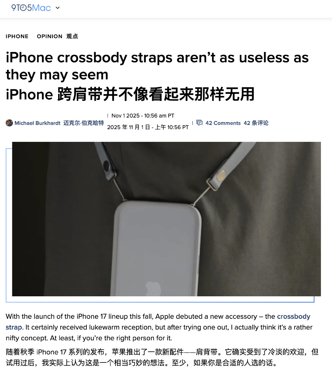 注意 9to5Mac 的措辞:苹果的 iPhone 斜挎挂绳确实受到了“冷淡的欢迎”。其实也就是反响平平。