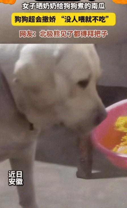 万物皆有灵!安徽,奶奶给狗子煮了一盆南瓜,结果被惯坏的狗子竟然没人喂就不吃。奶奶