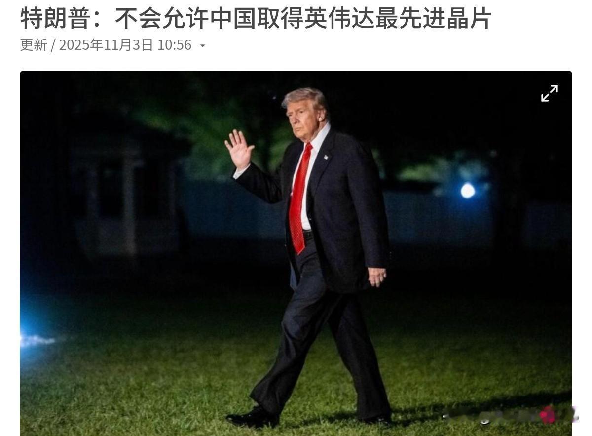 特朗普撂话了!这个问题没得谈,美国寸步都不会让!11月3日,根据外媒报道,美国总统特朗普在接受采访时表示,对于英伟达最先进的人工智能(AI)晶片。不会售卖。我们不会答应。英伟达是全球晶片领域最顶尖的公司。我们会让他们和英伟达交易,但不会让他们获得最先进的晶片。除了美国,我们不会让任何其他国家取得这种晶片。 因为那会让他们赢得AI竞赛。他们未必会赢,但肯定会拥有和我们同等的优势。很显然,特朗普的意思很清楚,想要获得美国最先进的人工智能芯片,这是没门的事情,不管中国态度如何,美国都不可能松口。美国至多只会允许中国获得不那么先进的芯片。 某种程度来说,对于中美科技竞争,特朗普这是摊牌了。那从我们的角度而言,既然美国继续实行科技遏制政策,其一,那我们的稀土管制政策,除了已经达成的共识,确保美国公司的正常需求外,那我们肯定也绝不会让美国的军工企业获得任何来自于中国的稀土。 其二,既然美国在高科技领域不愿意跟我们合作,那我们要做的就是继续推进高科技产业的独立自主。因此,我们的人工智能产业,也绝不能建立在不安全,性能没什么优势的英伟达芯片的生态基础之上。很显然,特朗普的这一态度,这就美国对于中美关系的真实反应。一句话,美国绝不会接受一个科技领先的中国,即便现在中美关系阶段性缓和,我们仍旧对美国也不会抱任何幻想。