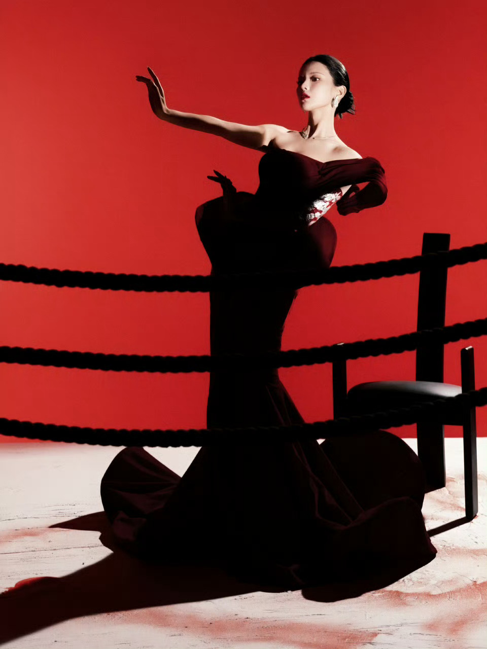 杨超越微博视界大会红毯造型出图[流鼻血] 杨超越 红与黑