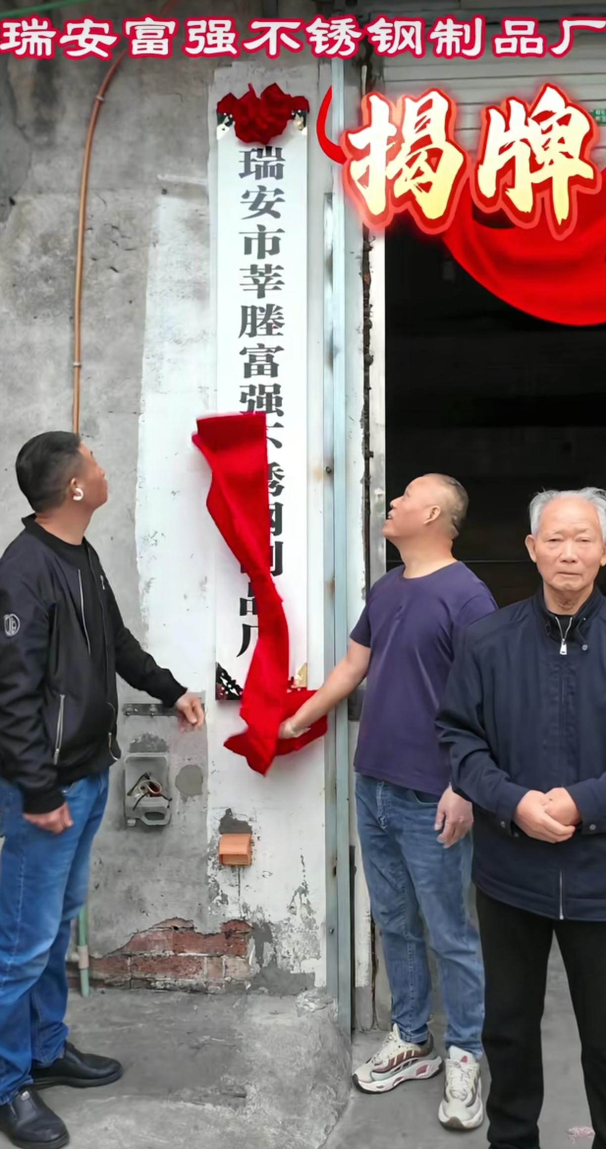 瑞安富强不锈钢制品厂正式揭牌了 父子两代人一眼看上去全是实在人,看大哥被拍时的那个诚实的眼神和无处安放的小手,这做不得假! 从老爷子传承到儿子,之前的锅都是手艺人一锤一锤手工打出来的,这是口口相传的口碑,看到厂房如此陈旧,老傅怎么也想不到还有东山再起的时候,这年头不管做什么首先🉐信誉值,尤其是锅把上面的这颗五角星⭐️请继续保持,突然一下子感觉升华了都,我觉得我买的不仅仅是锅,是匠人精神,是良心品质,甚至有家国情怀! 昨天刷到他们把经销权签给瑞安电视台是明智的,因为靠他自己运营真的不行,网络太复杂了,大家一定认准瑞安融媒,网路销售渠道只有这一家! 但怎么说呢,我们网友只认大叔一个人的脸,大伙都说“认人不认锅,这老板直播必买锅”,我觉得他应该听下大伙的呼声,哪怕是签了网络经销,也可以自己上阵去卖,只要是他本人出现在直播间就可以了,你们觉得呢? 记住哈,正品还没上市,要一个月呢,别乱买假货哦 瑞安不锈钢锅 浙江不锈钢厂家