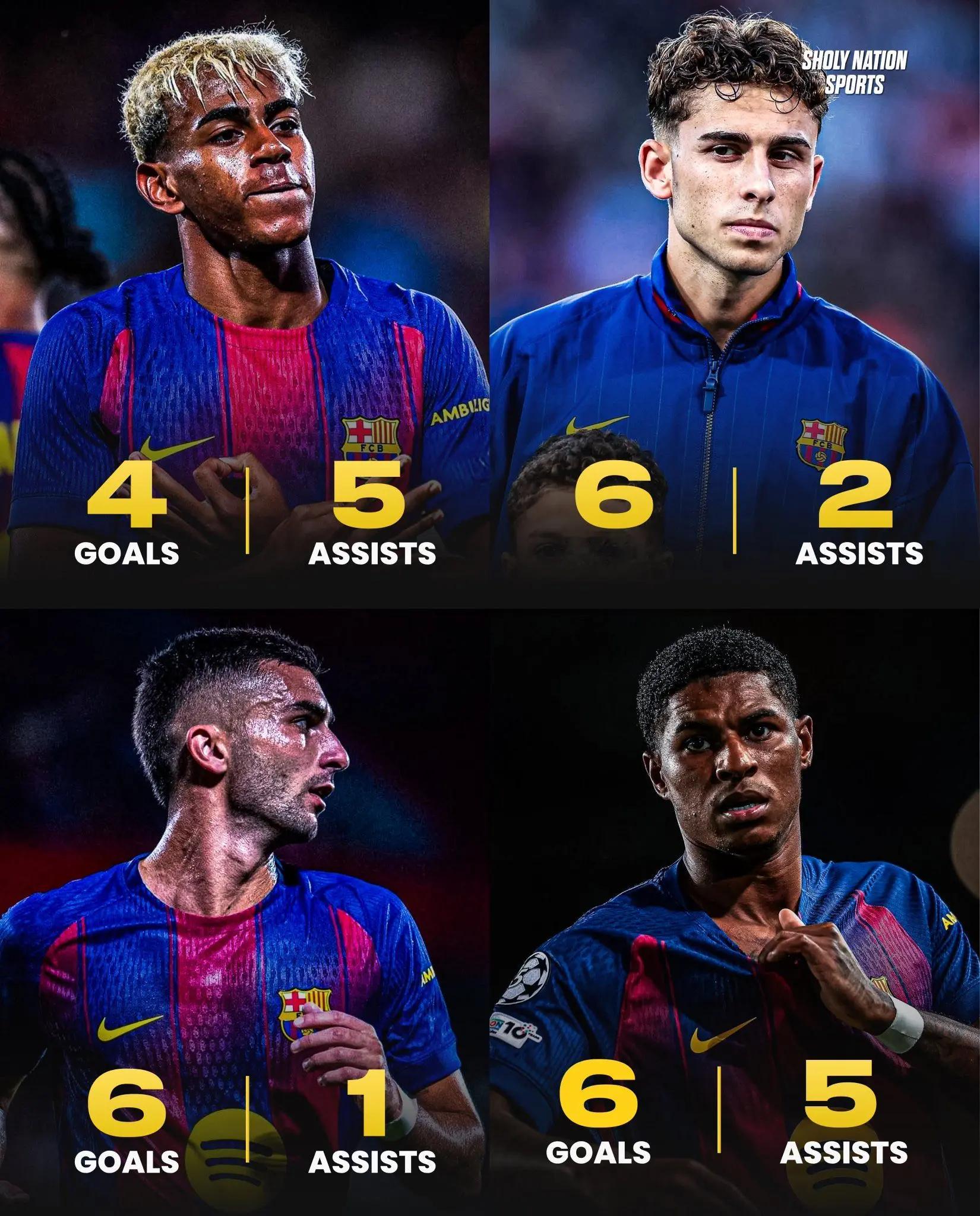 巴塞罗那前场球员本赛季数据(拉明·亚马尔、费尔明、费兰托雷斯、拉什福德):