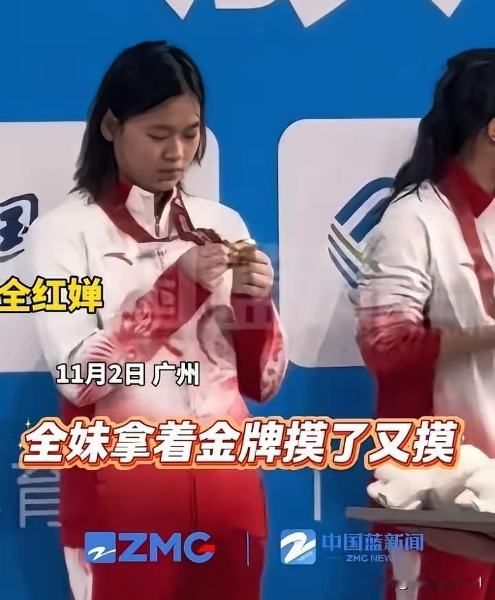 给人看哭了!! 全红婵拿到金牌后看了很久,小心翼翼地抚摸这块金牌,只有她自己知道,这金牌来得有多不容易。 这块金牌,是她无数汗水、泪水与苦水的结晶。 她实力强劲,却曾面临无赛场一展身手的困境,对运动员而言,这太残酷了。 或许正因深知机会难得,她才如此珍视这枚金牌。 全红婵的经历,不仅是个人的奋斗,更展现出运动员坚韧不拔的精神。