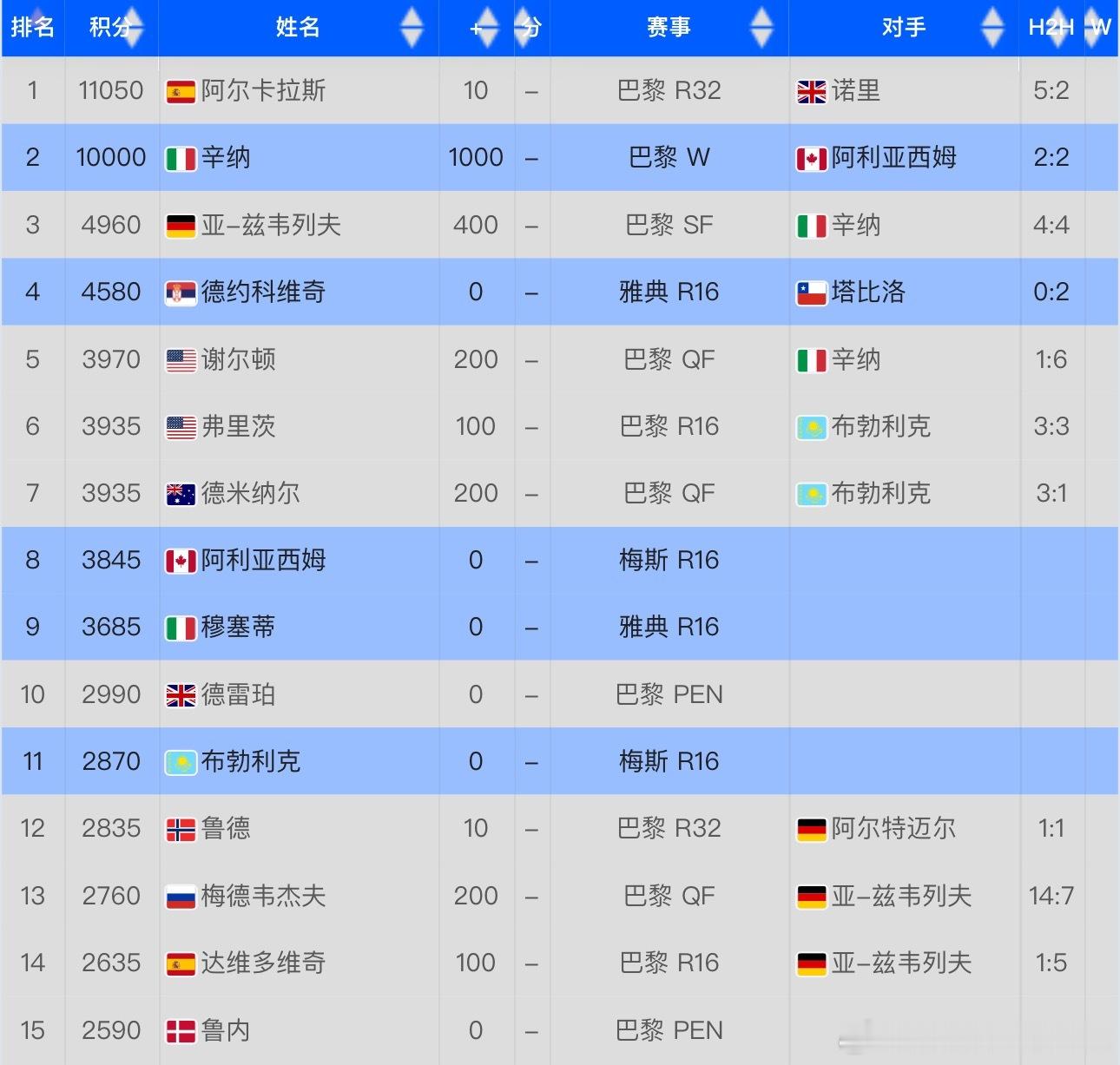 刚刚在巴黎大师赛决赛不敌辛纳的加拿大人阿利雅西姆宣布退出这个礼拜开赛的梅斯250赛;