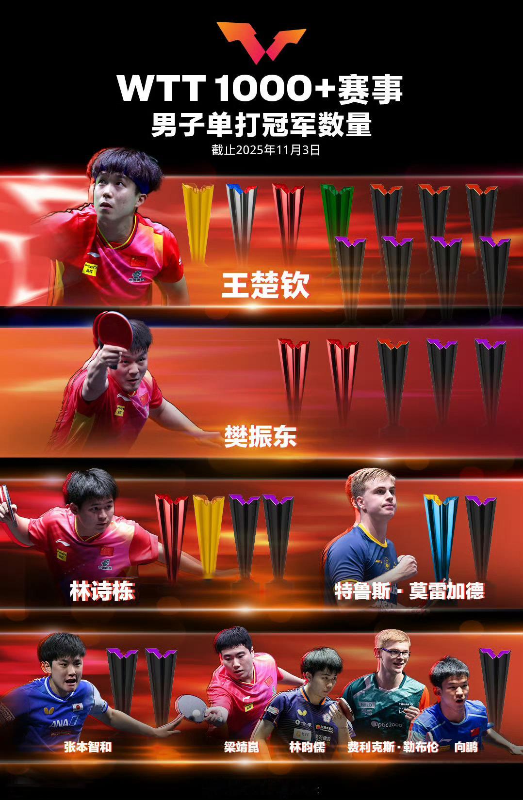 孙颖莎14冠王楚钦11冠