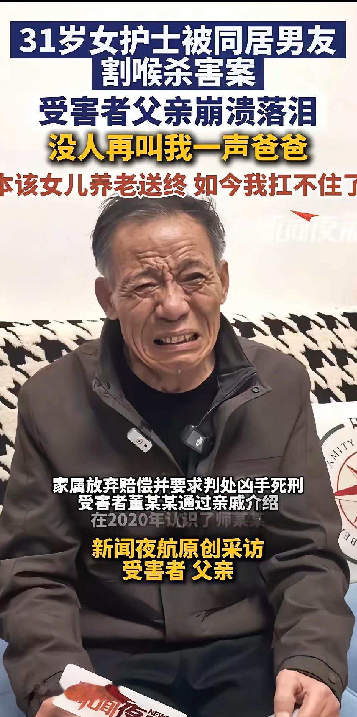 可伶天下父母心,终于开庭了! 女护士被砍喉498天后,家属拒赔要死刑:这不是狠是绝望! 等了498天,西安女护士董文卉遇害案终于一审开庭了!谁能想到,那个在医院救死扶伤的姑娘,会被同居男友师某某一刀捅进脖子,丢了性命 。 这哪是激情杀人?师某某早藏着坏心思——隐瞒已婚有娃的事实,花光董文卉58万积蓄,还长期掐她脖子、拿刀架她颈窝,日记里全是她的恐惧。报警后被威胁撤案,提分手就遭“你死我活”的恐吓,她的求救早就该被听见。 现在家属一分赔偿不要,就盼着杀人偿命。这不是固执,是对女儿惨死的交代。 家暴从来不是小事,第一次退让可能就是深渊。 真希望法律还姑娘公道!你觉得面对恋爱暴力,该怎么及时止损?来聊聊~