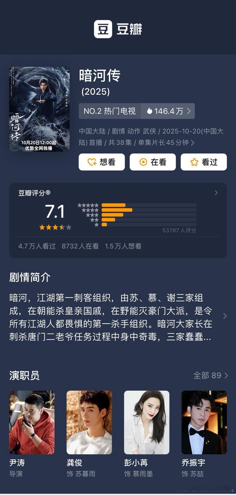 龚俊暗河传豆瓣开分7.1 评分人数5.4w