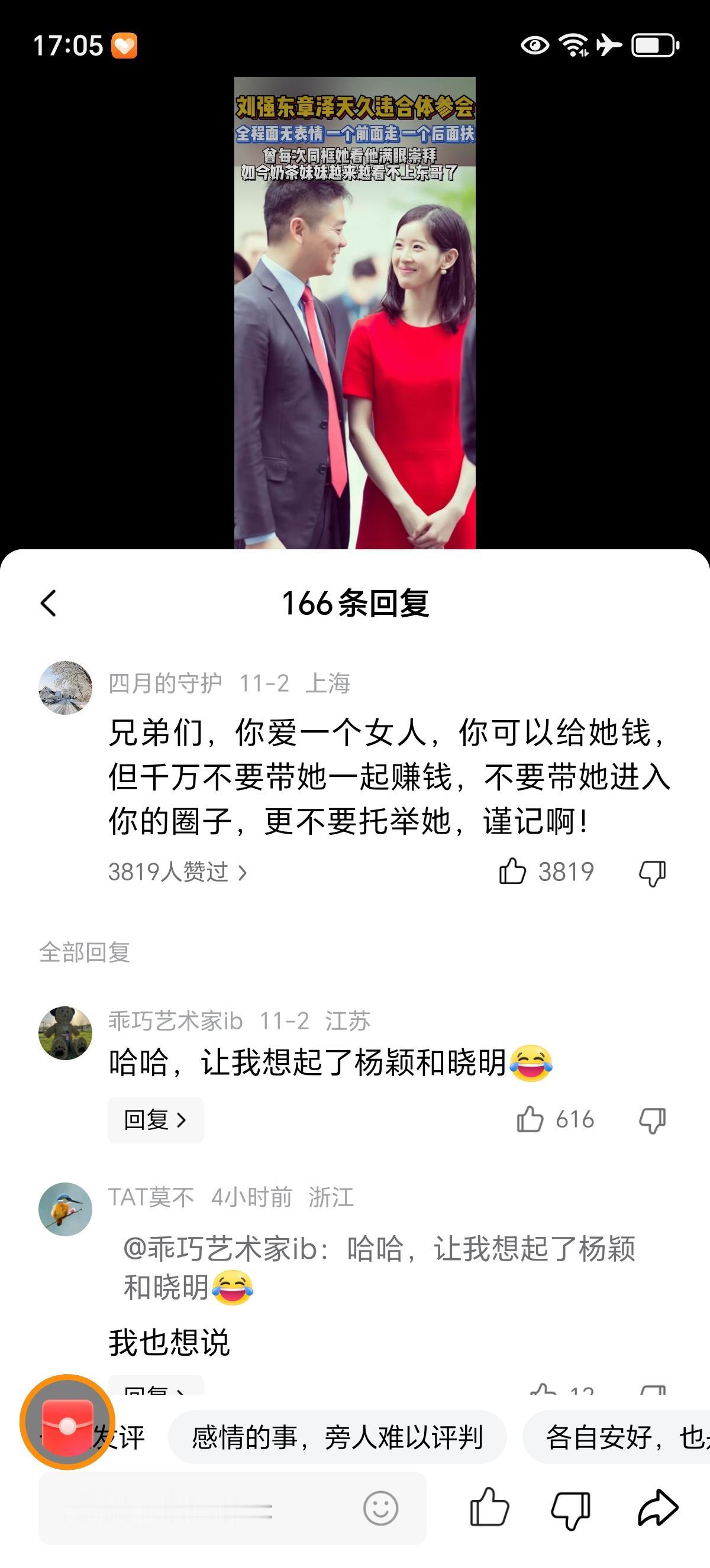 刘强东踩了男人的坑:把老婆捧成女强人,如今两人同框满是疏离感 说真的,刘强东这事儿办得有点欠考虑,犯了男人最忌讳的错——对漂亮老婆,你给她花钱随便造都没事,可千万别手把手带她进商圈、拼命托举她。现在好了,章泽天越来越优秀独立,两人同框都透着股说不出的生疏,难免让人觉得,她是不是已经开始嫌弃这位老大哥了? 想当年,章泽天还是大家眼里的“奶茶妹妹”,清纯可人,嫁给刘强东时,多少人觉得她是嫁入豪门的小娇妻。那时候两人同框,章泽天看刘强东的眼神里全是崇拜,挽着他的胳膊紧紧的,满是依赖感。可刘强东偏不满足于让她做个养尊处优的老板娘,非要带着她闯进商业圈,手把手教她投资,给她铺路搭桥。 这些年,章泽天在刘强东的扶持下真是脱胎换骨。从清华学霸到海外深造,再到变身专业投资人,拿下Uber、Bubs等优质项目,甚至被刘强东夸“商业嗅觉比我还精准”。她不再是那个只靠颜值出圈的小姑娘,而是能独当一面的女强人,出席伦敦艺术展、对接商业资源,气场越来越足。可偏偏是这份“托举”,让两人的关系悄悄变了味。 前段时间两人在韩国参会的同框照,简直颠覆了大家对他们的印象。章泽天走在前面身姿挺拔,自顾自地往前急走,刘强东跟在后面想搀扶她,动作却别扭又生疏,两人之间还隔了一个身位。以前都是章泽天主动挽着他,现在却变成刘强东努力追赶,脸上还带着点不耐烦,章泽天则全程表情淡然,甚至有明显的身体躲避动作。 还有之前的活动现场,两人台下交流时表情僵硬,章泽天眼神若即若离,一闪而过的冷淡根本藏不住。想当初明州事件时,章泽天还能挺着孕肚陪他亮相稳住局面,可现在,那份默契和依赖似乎早就没了。有人说这是因为章泽天常年居外带孩子,两人长期分居导致感情变淡,但更深层的原因,恐怕是她翅膀硬了,眼界和格局都变了,而刘强东还没适应这种变化。 男人啊,有时候真得懂个道理:老婆漂亮就好好疼着,给她钱花让她开心就行,别非得把她推到风口浪尖上搞事业。你把她托举得越高,她看得越远,就越难再把目光停留在你身上。现在的章泽天,有自己的投资版图,有独立的社交圈,气场早就不输刘强东了。反观刘强东,还得在朋友圈自嘲“在老婆面前没了自信”,这画面想想都有点唏嘘。 说到底,刘强东就是没把握好分寸,踩了“过度托举”的坑。本来是想让老婆更优秀,结果反倒拉远了两人的距离。现在两人同框满是疏离,不管是不是真的嫌弃,这份曾经让人羡慕的感情,确实已经不是当初的样子了。这也给所有男人提了个醒:疼老婆可以,但千万别用错了方式,有时候“放养”比“托举”更能留住感情。