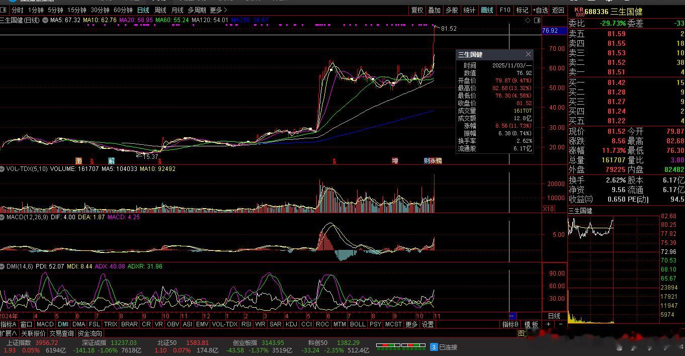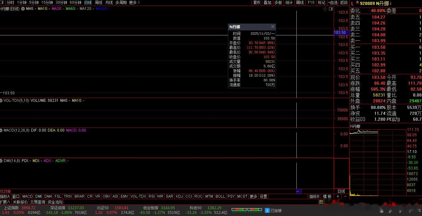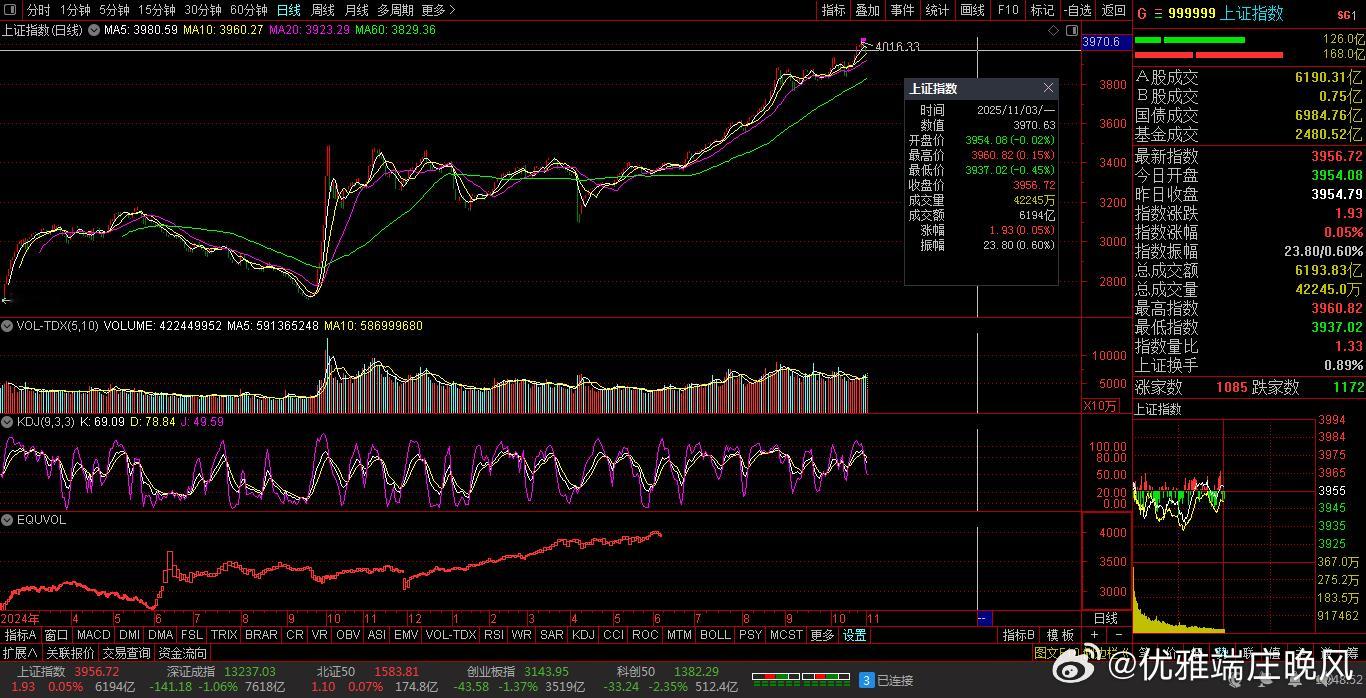 今天目击:沪深北市:早盘:低开三跌,三涨三跌。尾盘:沪指:七涨二跌,次高红盘。深指:六涨二跌,次低绿盘。看点之一:沪指低开:盘中震荡:瞬间上扬。看点之二:创科创50:弱不禁风:冲高回落。看点之三:沪深北市:半日成交:13987亿元。盘面追踪:2677股飘红。