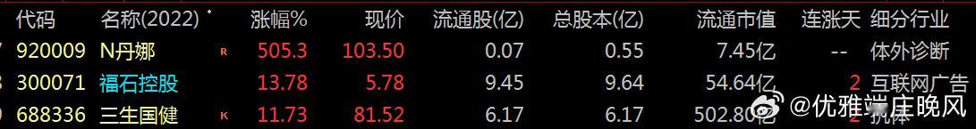 920009 N丹娜 300071 福石控股 688336 三生国健