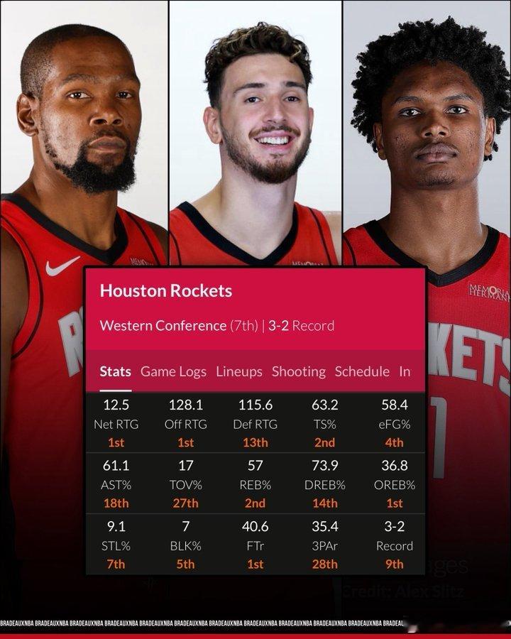 随着今日马刺输给太阳,火箭队现在在整个NBA中拥有联盟第一的净胜分率🚀🚀(+12.5)