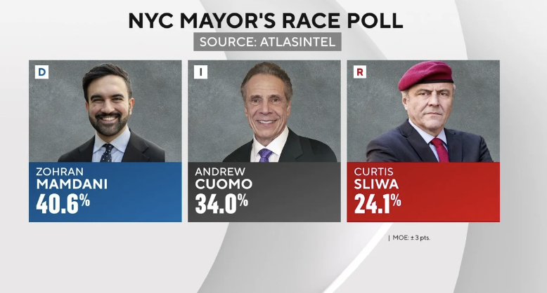 据环球时报报道,如果成功当选,马姆达尼将成为纽约市史上首位穆斯林和印度裔以及最年轻的市长。据昆尼皮亚克大学10月23日至27日发布的民调显示,马姆达尼的支持率为43%,科莫的支持率为33%,斯利瓦的支持率为14%。前两位的支持率相差10个百分点。