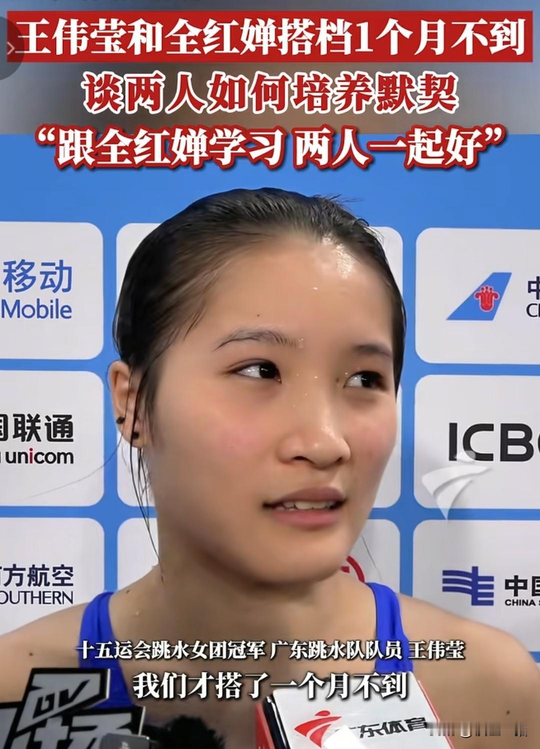 王伟莹被压力了, 她说跟全红婵合作压力太大,不敢洗头,一洗头至少掉二十根头发,她们两个合作,连一个月的时间都没有,两个人的默契也没有那么高,但是这次依然夺金了,这就是全红婵的实力。 这次全红婵已经开始带新人了,其实双人搭档就是这个样子,一个实力强点的带实力稍微弱一点的,实力强的给实力弱的做陪练,提升实力弱的运动员的水平。 全红婵为陈芋汐陪练多久了,不然她不可能有今天这样的高度的,国家队一直把全红婵当陪练,结果巴黎奥运会居然还是全红婵夺冠,之后全红禅的运动生涯就不太平了,不要说什么实力决定一切,前提是要公平竞争呀,再在国家队待下去,全红婵搞不好真的就折翼了。