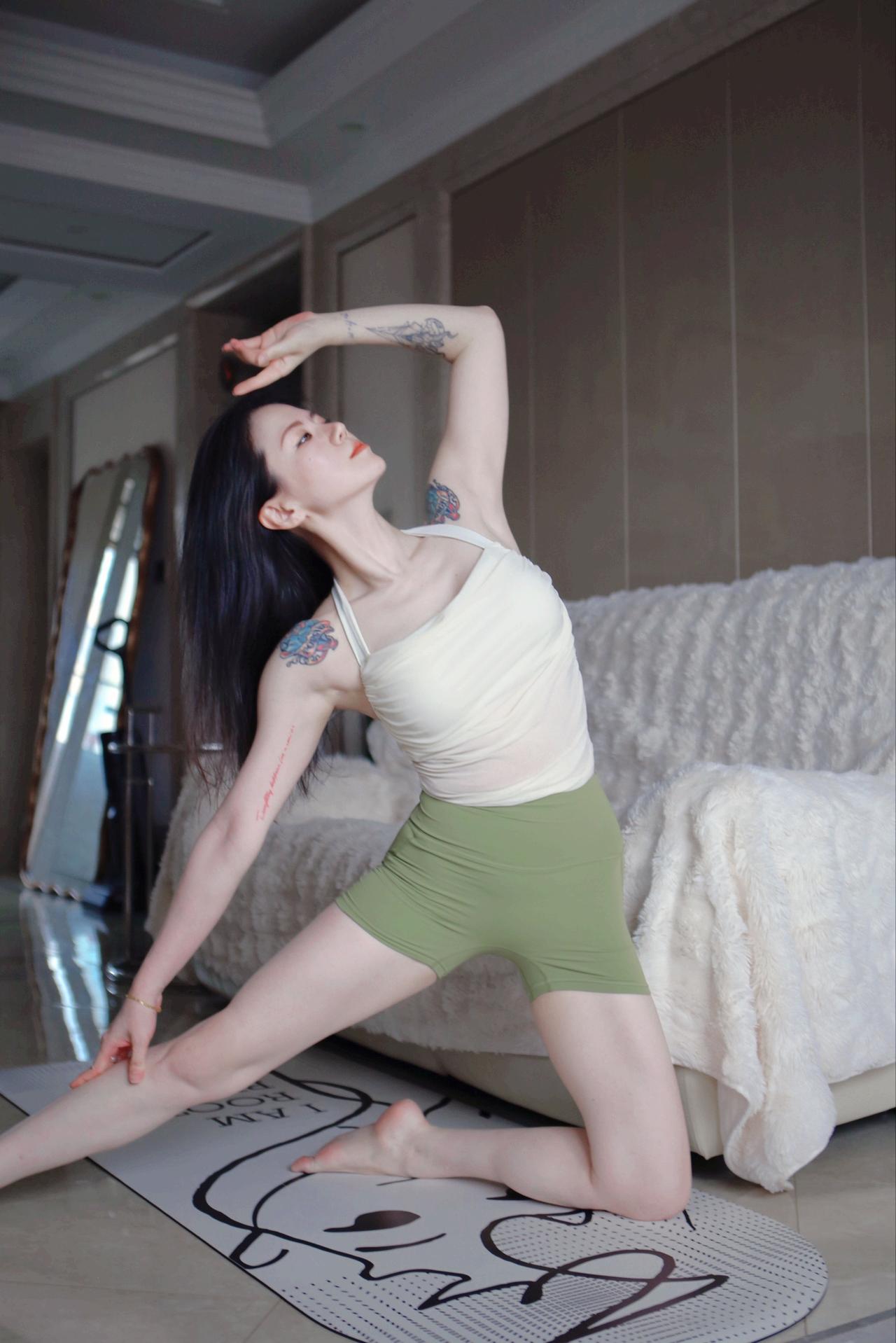 居家瑜伽|身体是我摆放在未来的几何图形。瑜伽女孩 瑜伽拍照体式