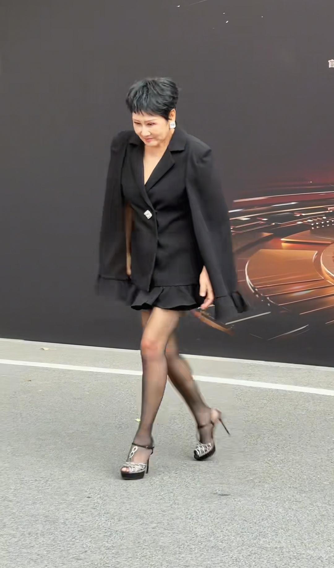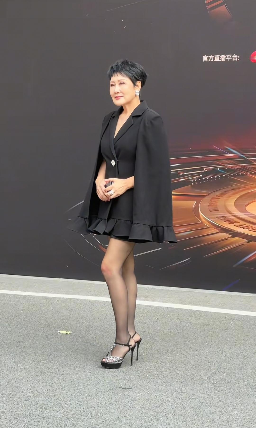 63岁的明星张凯丽如今依然活跃在文艺界,当主持人、演电视,尽管年龄也大了,但仍然大胆尝试前卫大胆的衣服。 11月3日,张凯丽出席一活动,穿的礼服特别前卫,穿着黑色镂空网面高跟鞋,黑色丝袜,黑色短款连衣裙,披着黑色外套,戴着耳环。 尽管年龄大了,但是保养的很好,头发乌黑,也看不出脸上的皱纹,身材一点没有发福走样,有男粉丝直呼“凯丽姐有女王范”。