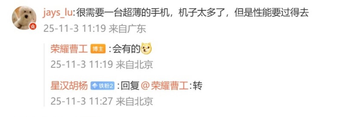 荣耀也会有超薄手机,那目前能确定的已经有华为荣耀,其实卷一卷这个赛道挺好,争取把iPhoneAir价格打下来。[doge][doge]