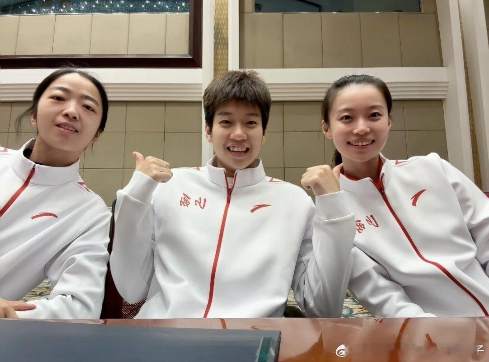 参加山西体育代表团全运会出征动员大会的山西乒乓球女队🤳韩菲儿、梁家怡、张优佳