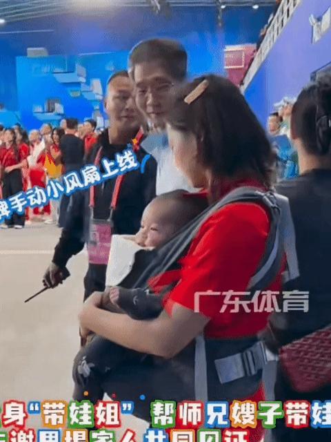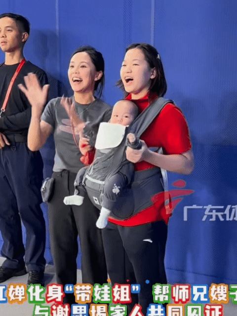 全红婵带着谢思埸家的宝宝给广东男团加油[哈哈][哈哈][哈哈]