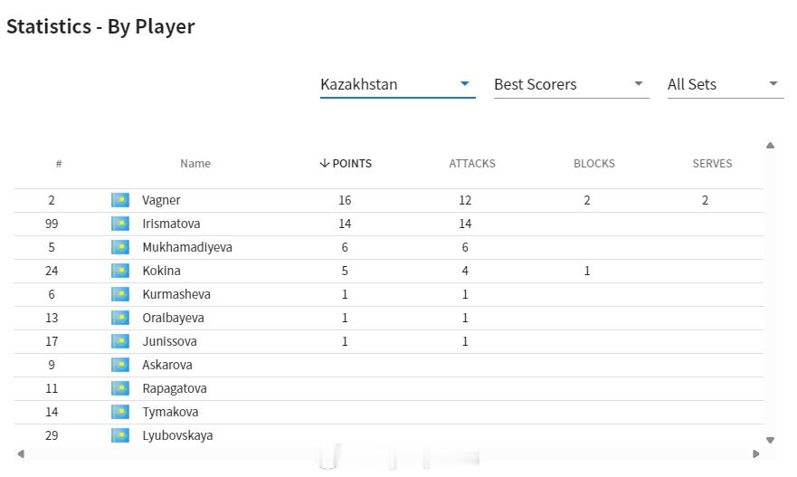 【U16女排亚锦赛中国3-0哈萨克斯坦技术统计】国际排坛战报速递 11月3日约旦安曼,U16女排亚锦赛小组赛最后一轮,中国3-0(25-17/25-22/25-11)横扫哈萨克斯坦。扣球34-39、拦网6-3、发球9-2、对方失误送分26-6。徐睿琳13分(11扣8中1拦4发)、陈睿菡8分(19扣8中)、陈馨怡7分(8扣4中3拦)、隋依妙7分(12扣6中1拦)、杨淼淼7分(14扣7中)、范元晟6分(2扣1中1拦4发)、孙雯煜1分(1发)。