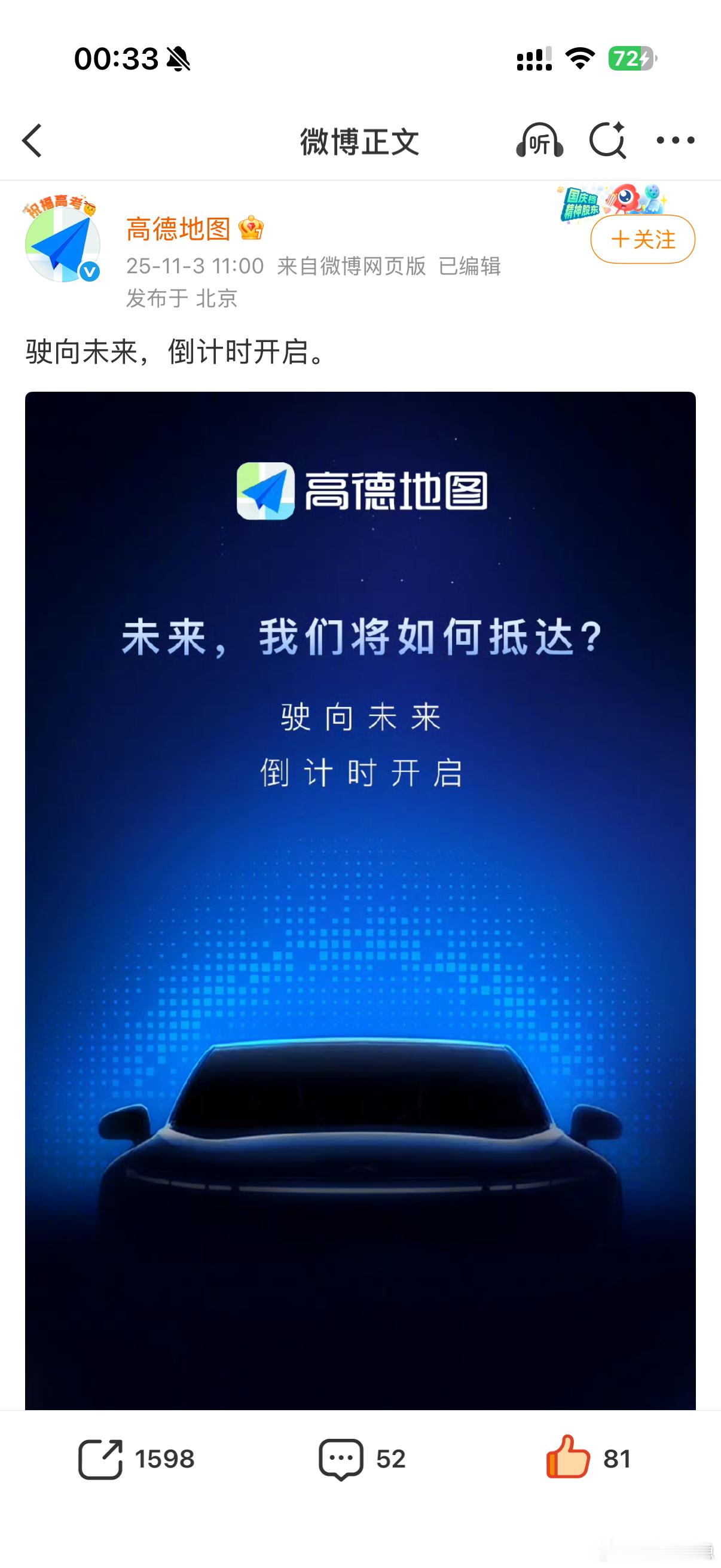 驶向未来,倒计时开启。今天高德官方突然发布了一张汽车剪影的照片,老司机们都认出了是经典神车小鹏P7。