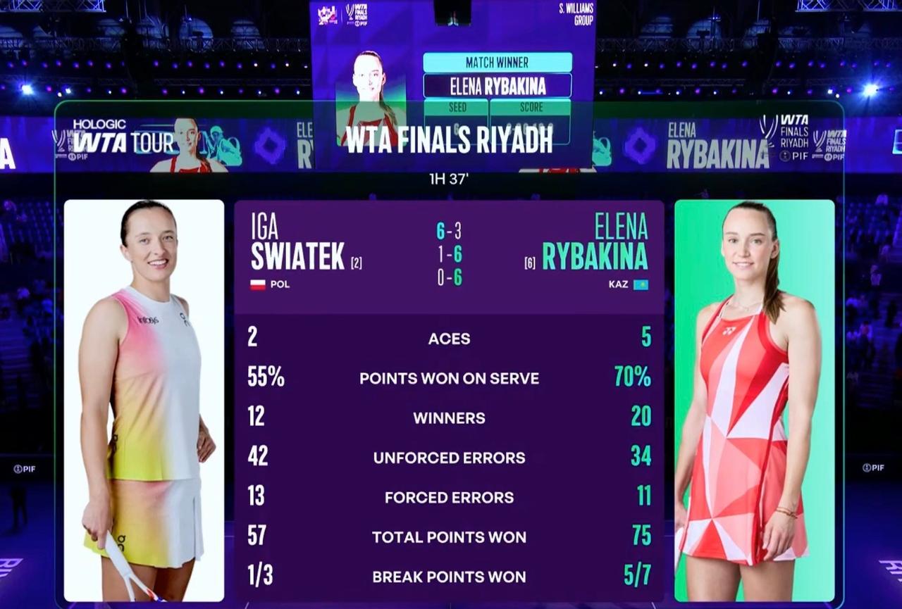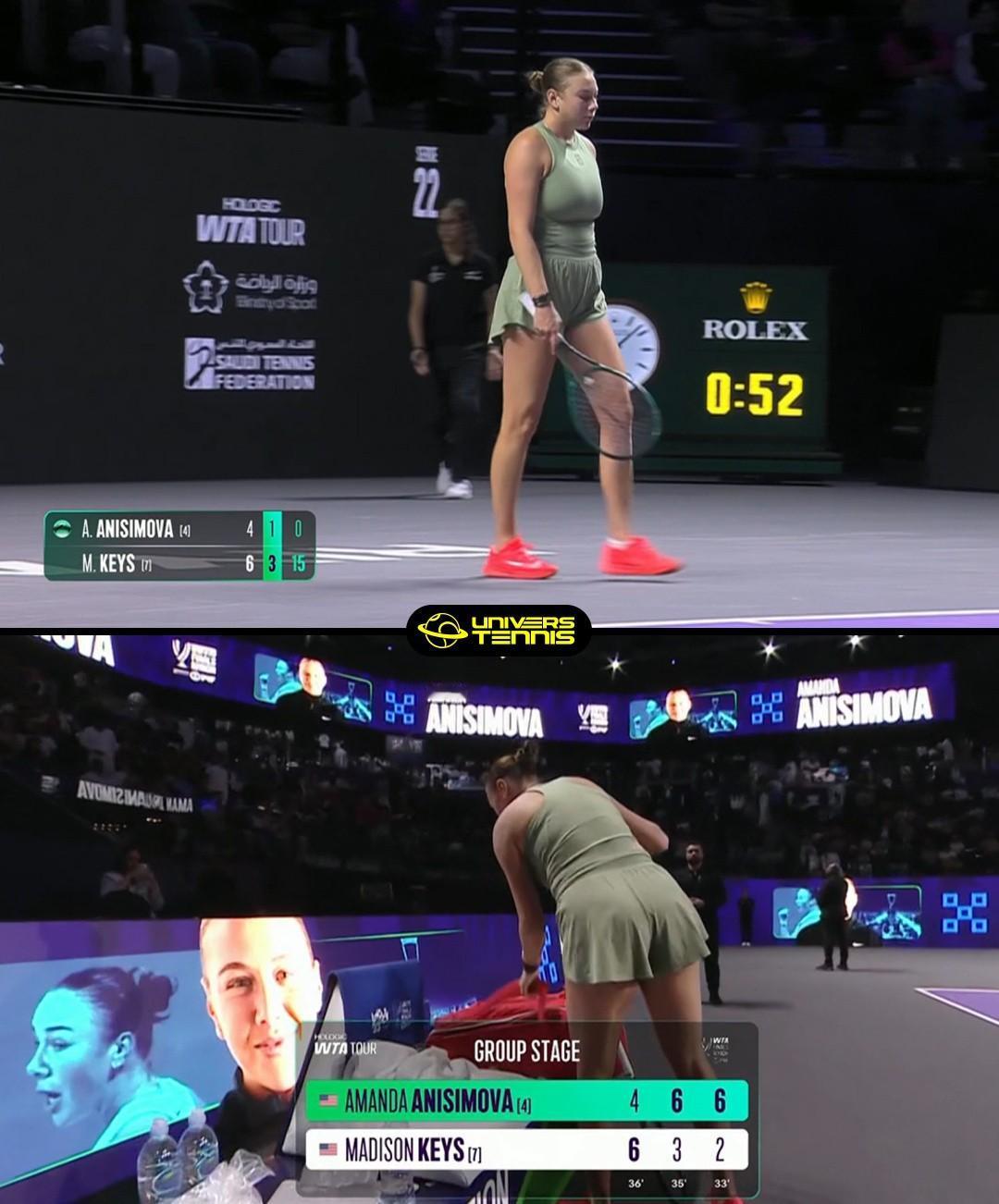 利雅得WTA年终总决赛小组赛,莱巴金娜两连胜锁定出线,阿尼西莫娃逆转凯斯保留出线希望。最后一场药娃丝袜争夺最后一个出线名额,凯斯为奖金和荣誉而战。 莱巴金娜3-6/6-1/6-0斯瓦泰克 阿尼西莫娃4-6/6-3/6-2凯斯 莱巴金娜共收获 400分、105万美元 斯瓦泰克共收获200分、69.5万美元 阿尼西莫娃收获 200分、69.5万美元 凯斯收获34 万美元。