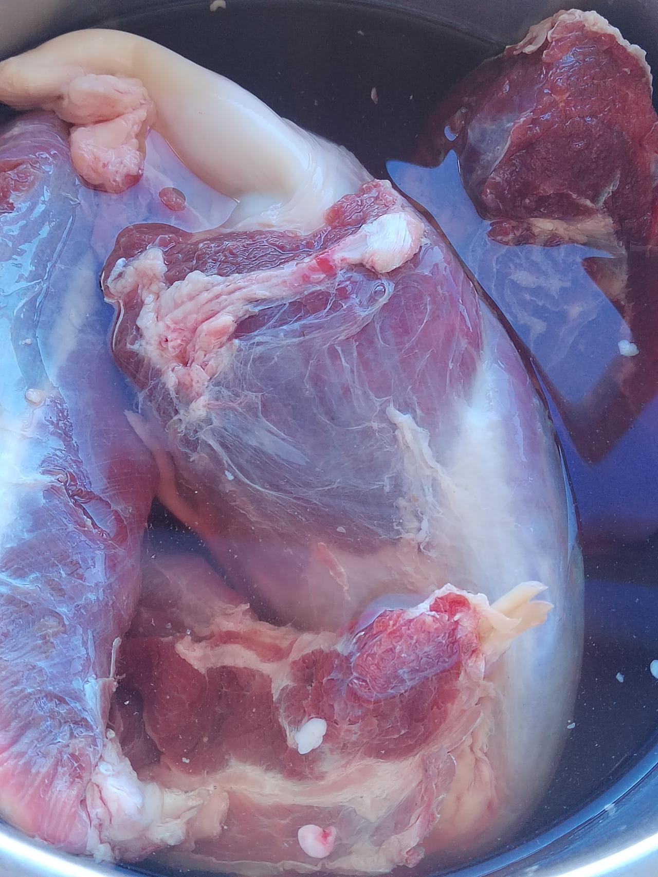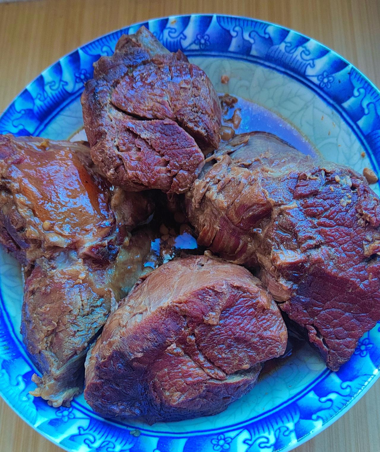 前几天买的牛肉,昨天一大早便拿出来化冰。 吃过午饭,我便备好了葱、姜、大料等,只等着下锅煮了。 闲来无事,便又拿起手机坐沙发上不知不觉睡着了。 对象拿羊奶回来我才醒,一问,人家把牛肉煮好了,在高压锅里焖着呢。 于是赶紧打开锅盖一看,这会可真焖大劲了。 行啊,切不囫囵的就手撕得了。 我是想得开,有人做饭吃就好,好做好吃,孬做孬吃,从来不挑食。 偶尔我做顿饭,人家就挑毛病,不是盐多就是油少,所以我干脆就不做了。 这样更好,省心。