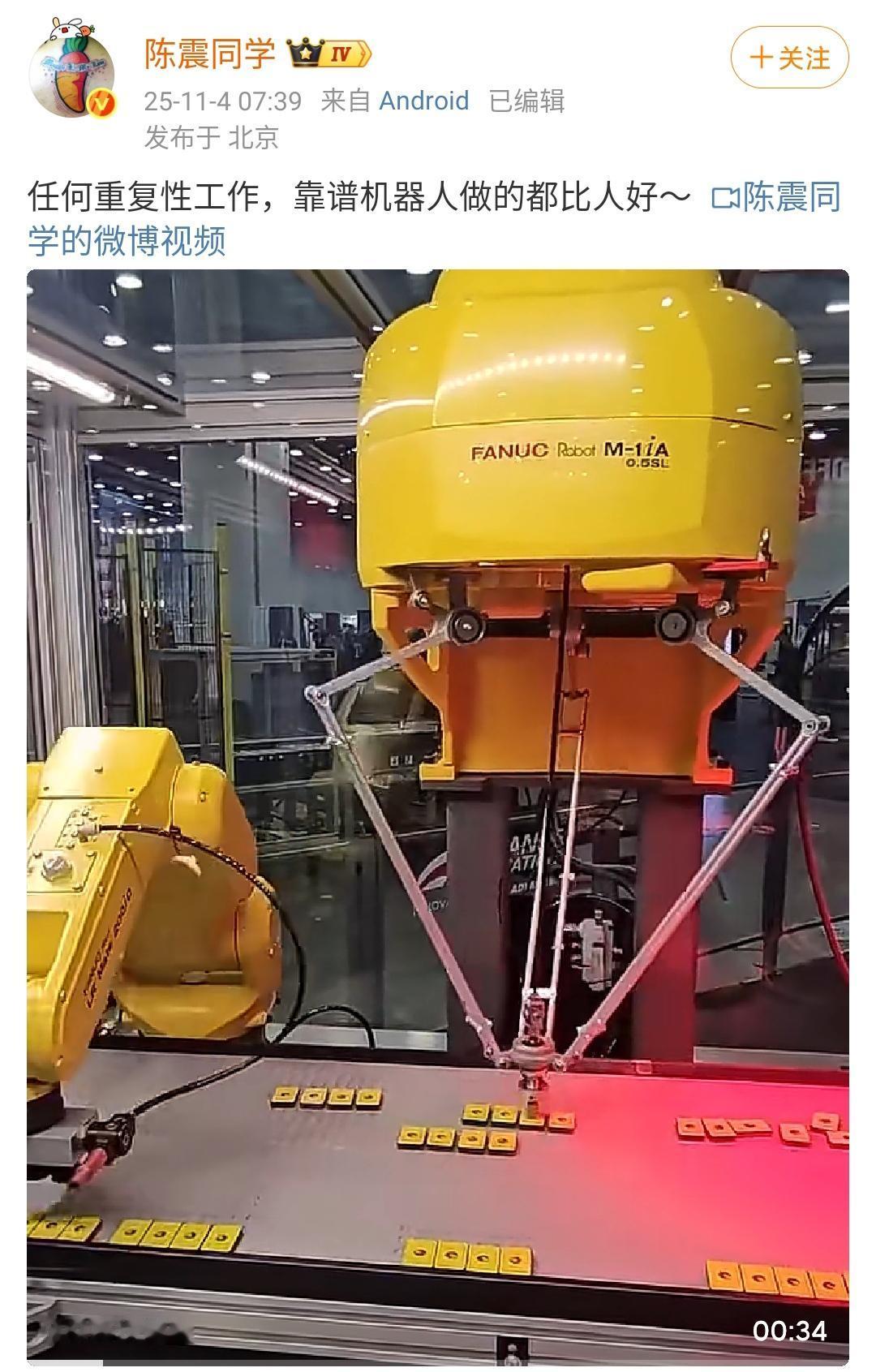 陈震:任何重复性工作,靠谱机器人做的都比人好! 其实在工厂里面,机器人替代人的现象越来越多,很多已经很重复的工作岗位,已经由机器人替代了。 比如说以前一个生产线需要20个人,现在一个生产线只需要三个人,其中两个人负责协助机器人完成工作,一个人负责照看机器人。 而且机器人的成本相对来说较低,现在很多机器人的采购价已经低于10万元以下,对于一个企业来说比人工划算。 各位是怎么看的?欢迎评论区留言。