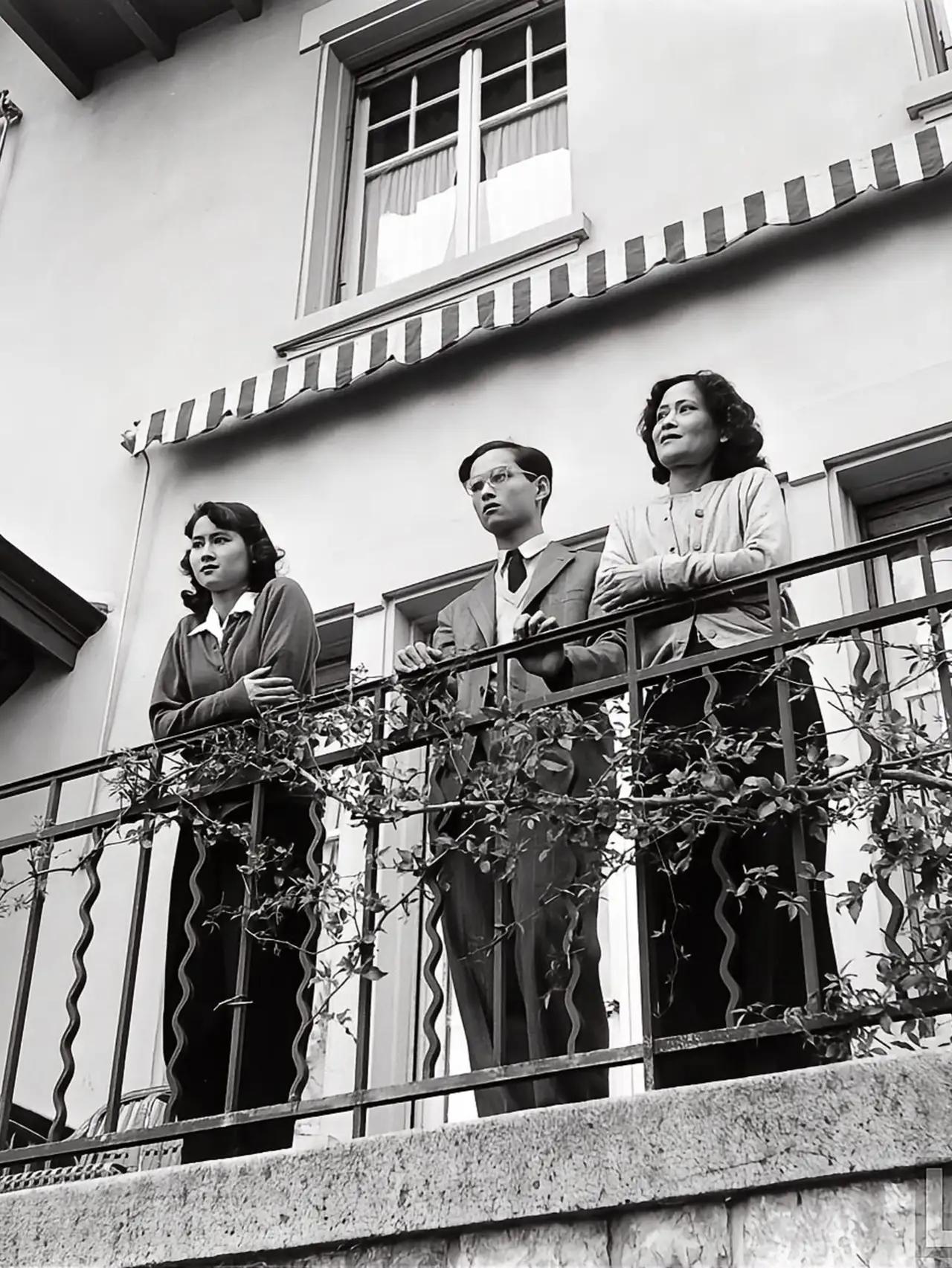 老国王和母亲姐姐站在楼阁,他们一家人都长得斯斯文文的,楼阁因为美丽的他们而成了一道风景线。