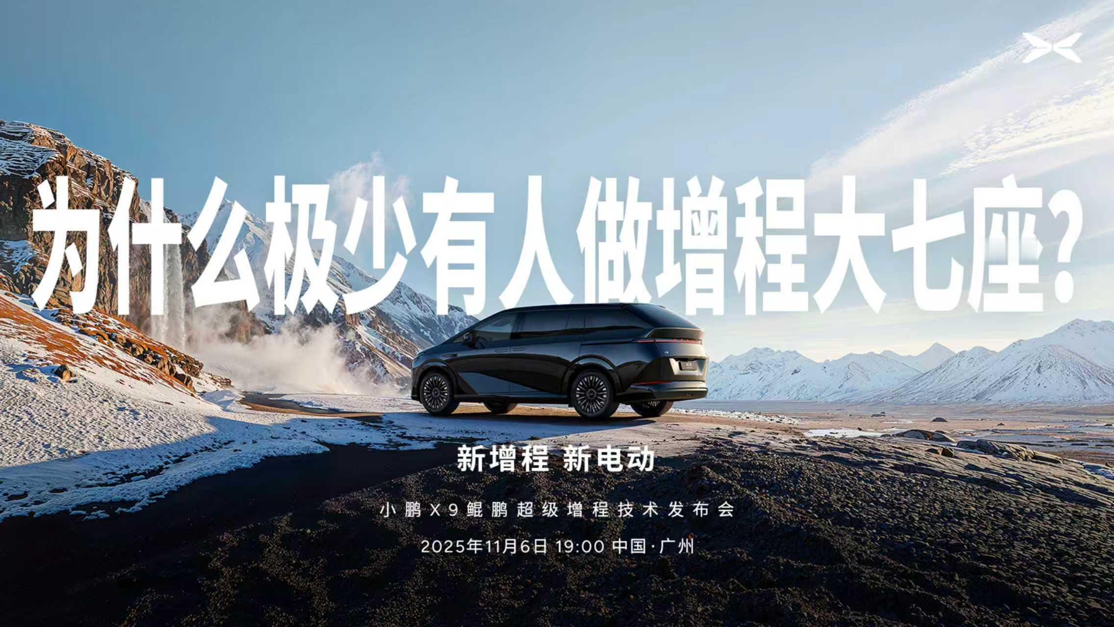 11月6日 19:00,小鹏X9鲲鹏超级增程技术发布会,锁定小鹏官方直播间,一起见证「新增程 新电动」