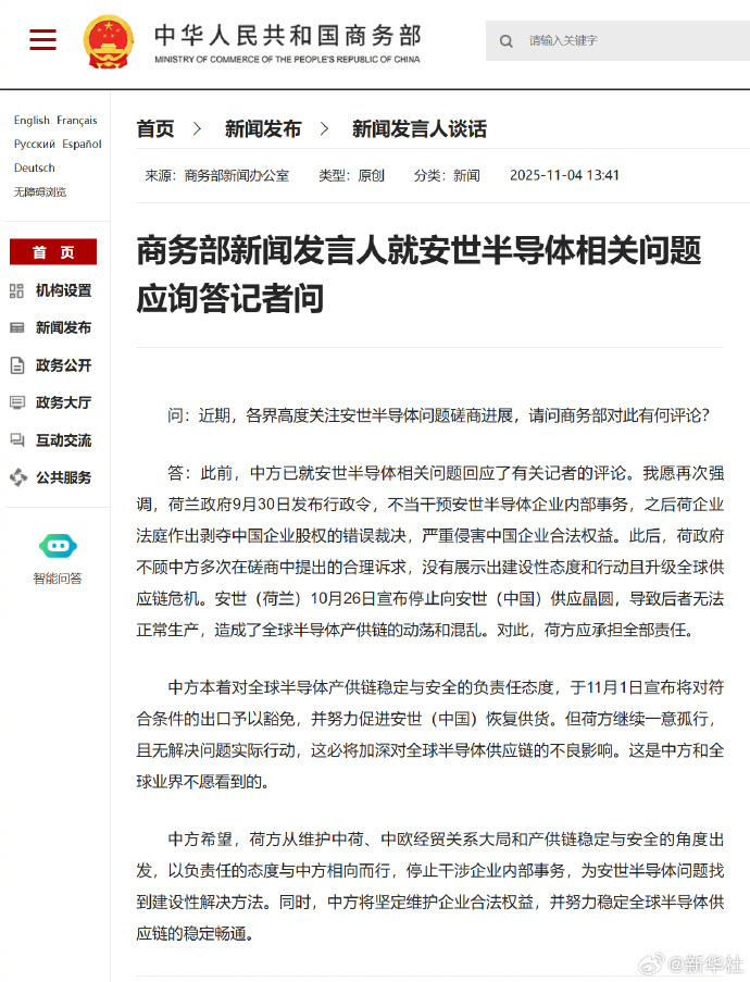 #商务部就安世半导体相关问题应询答问#【商务部新闻发言人就安世半导体相关问题应询