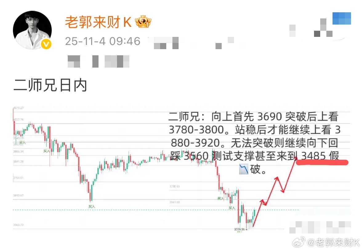 很完美的位置,二师兄后续观察 3840 能否突破。下方还有 3680 和 359