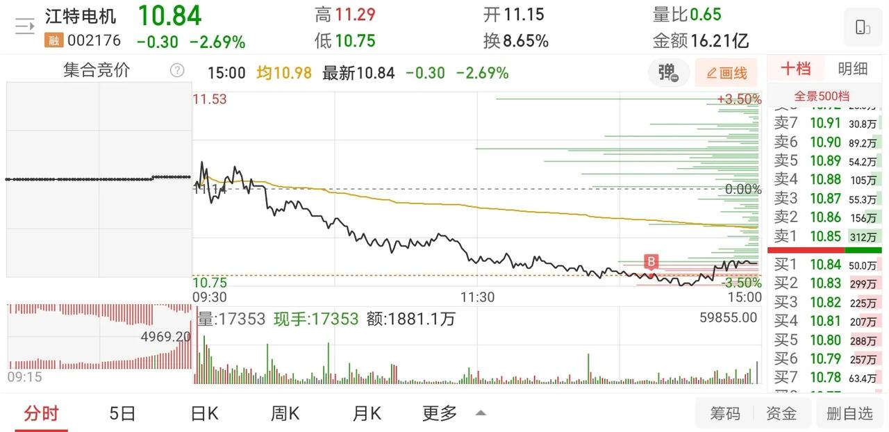 11月4日实盘:隆基小仓位格局小亏离场,江特低吸成功小幅回血! 1、隆基绿能 隆基是昨天尾盘介入的个股,早盘微红状态表现尚可,再加上光伏早盘整体还算不错,所以开盘下杀的情况下并没有及时止损,之后回升拉至红盘压力明显的情况下在21.81位置止盈半仓,剩余仓位格局,之后回落到均线位置有明显支撑的情况下再次拉升,但是板块却并没有跟随,所以在明显回落的情况下在21.89位置再次卖出剩余仓位半仓,最后4分之1仓位选择格局,最终大盘板块同时偏弱的情况下并没有出现拉升,尾盘竞价无奈止损离场,这只个股最终亏损0.25%! 隆基今天完全是可以盈利离场的,早盘的两笔卖点几乎都是卖在阶段性的高点,就是这样的情况下,隆基最终还是亏损离场,确实挺难受的,可能是昨天亏损幅度有点大,今天小幅盈利心有不甘,感觉反正只剩小仓位,就干脆看看它最终能走成怎样,可惜最后挺失望的,直到尾盘也没有再次拉升到分时均线以上,这也说明尾盘买入法其实早盘在合适的卖点卖出会是最合理的,虽然很多时候会卖飞,但是想想格局的亏损,其实稳定盈利才是最重要的! 2、江特电机 午后大盘大幅下杀,江特也是明显兑现,看它在10.78的位置连续支撑了10分钟以上,所以选择在10.79的位置进行低吸,可惜大盘并没有跌到位,之后继续下探后,江特也是持续下跌,但是尾盘最后阶段大盘出现了一定修复,江特也同样出现了一波小幅拉升,最终收在10.84,这只个股当日浮赢0.45%! 江特是典型的涨停板后连续出现3根阴线的洗盘形态,而且3个交易日成交额是一天比一天低,这是比较典型的洗盘形态,今天虽然江特最终没有收在5日线上,但是更多的是因为大盘板块深调的原因所在,所以这个位置就比较值得博弈了,因为隔日一旦继续走弱,江特的趋势就是明显走弱了,而一旦连续两日跌破5日线,个股的热度也会大幅降低,那么隔日就算拉升也不会有资金来接盘,所以江特如果想要继续有持续性,隔日出现止跌信号的概率就非常大,毕竟整个固态电池连续调整了两个交易日,隔日也是会有修复预期的! 今天短线情绪其实非常不错,早盘合富涨停价开盘,成交额1.12亿还是非常健康的,所以它开盘能够出现承接封板的表现是带动了短线情绪的,所以AI应用的龙头粤传媒近涨停开盘后出现资金迅速承接封板,同样钍基熔盐堆概念的海陆开盘出现炸板放量后迅速有资金去承接封死涨停,而市场最核心的平潭也是大幅高开正反馈,曲目在开盘顶住分歧后出现资金强势做多封板,虽然板上有承接,但是最终还是稳稳封住涨停,所以今天市场其实连板接力情绪是非常好的,特别是各板块的龙头,都有非常亮眼的表现,可惜小胖自己并没有做,毕竟神州受伤后选择了休息一下,其实做短线接力市场最高标的情绪非常重要,这个一定要特别重视! 小胖今天账户算是有明显的止跌了,虽然整体算是小赚,但是毕竟止住了颓势,小胖自己近期的状态并不好,所以接下来可能更多的会去做防守,进攻的话还是要去找状态,所以在打板的选择会更加慎重! 文中的内容仅为分享和交流,不作为实际操作建议!