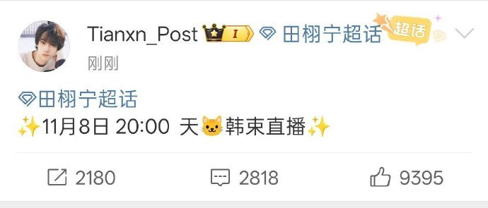 田栩宁直播要来了,田栩宁韩束直播预告,咱就说这次又会是什么look和我们见面呢,燥侯和阿栩的直播见啦~