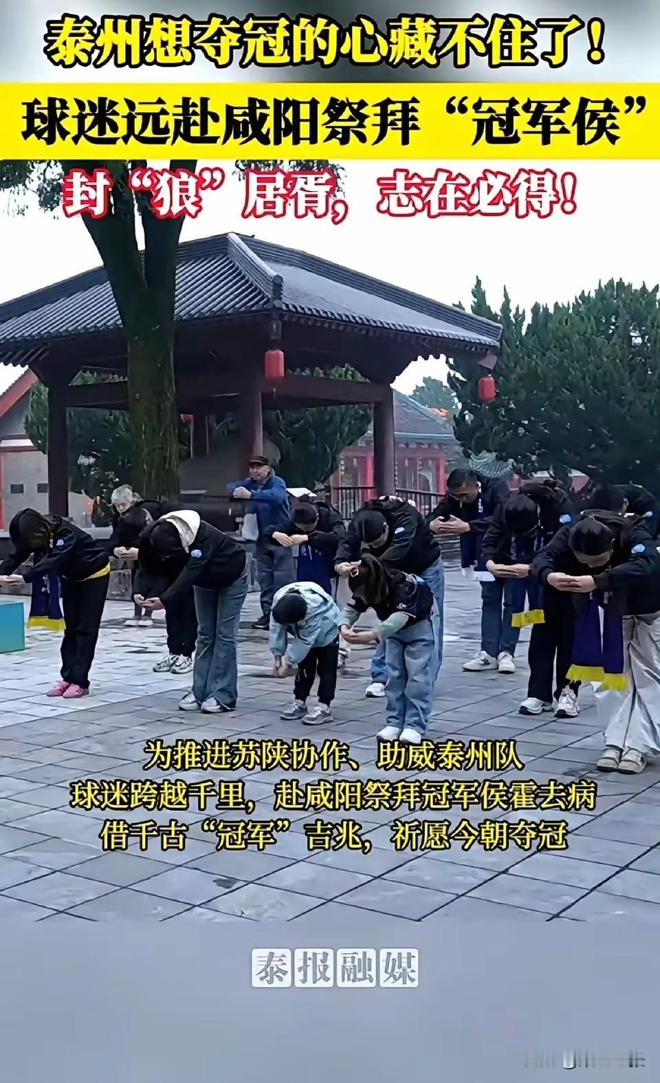 冠军侯霍去病是大汉传奇。20岁时,他打下河西走廊,汉武帝在此设4郡,郡名沿用至今。其墓建成祁连山形状,山丹军马场传说第一任场长也是他。 谁能想到,2000多年后他还助力泰州队夺苏超冠军。泰州的兄弟们千里奔袭陕西,到霍去病墓求“冠军运”,这操作很绝。毕竟陕西黄土下埋着千古名将,石头都透着大汉雄风。再看吉祥物斗法,南通狼碰上“封狼居胥”,泰州凤遭遇“落凤坡警告”,文化梗十足,趣味满满!