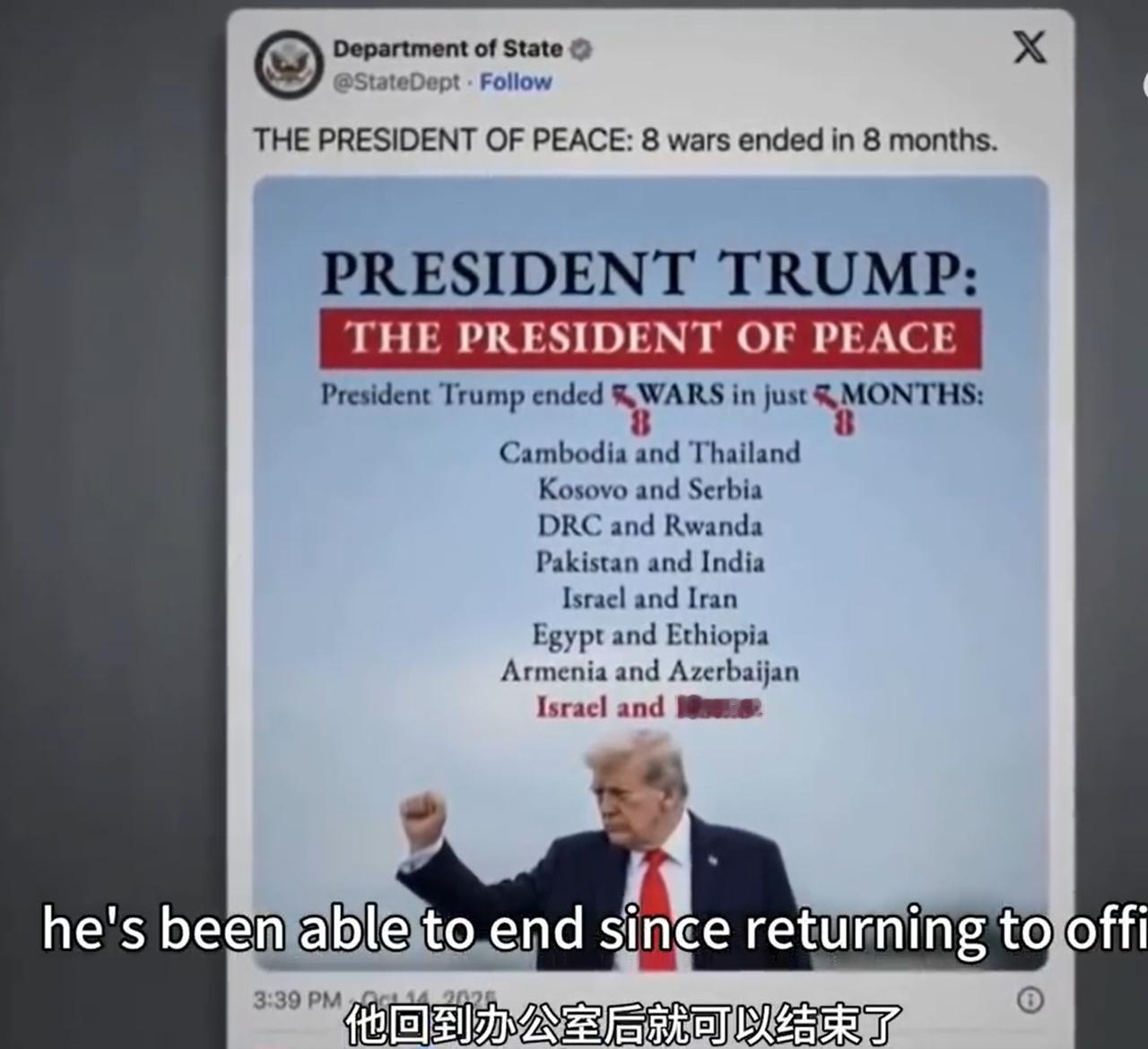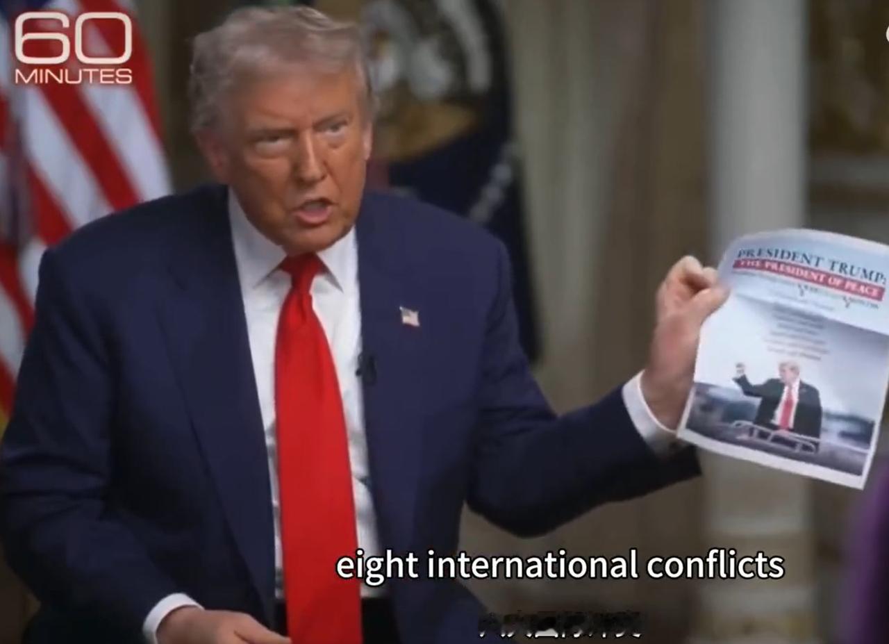 老特:我结束了8场冲突,你们就是不信,那我就只能一一列出来了。 列出来还不是关键,还要打印出来,而且是彩打。 打印出来也不是关键,还要随身携带。 这可不是AI视频,这是美国的主流媒体《60 分钟》公布出来的。 从老特的这个举动也能够看得出来,他为自己没有得到诺贝尔和平奖感到不甘心,如果有机会去挪威,老特一定还会当面展示他的列表。