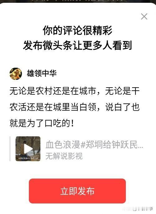 无论是农村还是在城市,无论是干农活还是在城里当白领,说白了也就是为了口吃的!