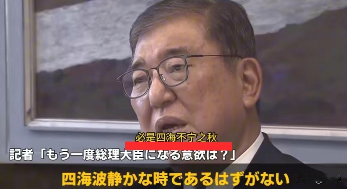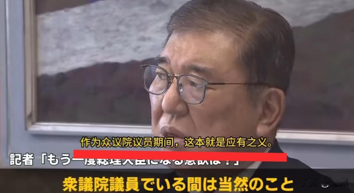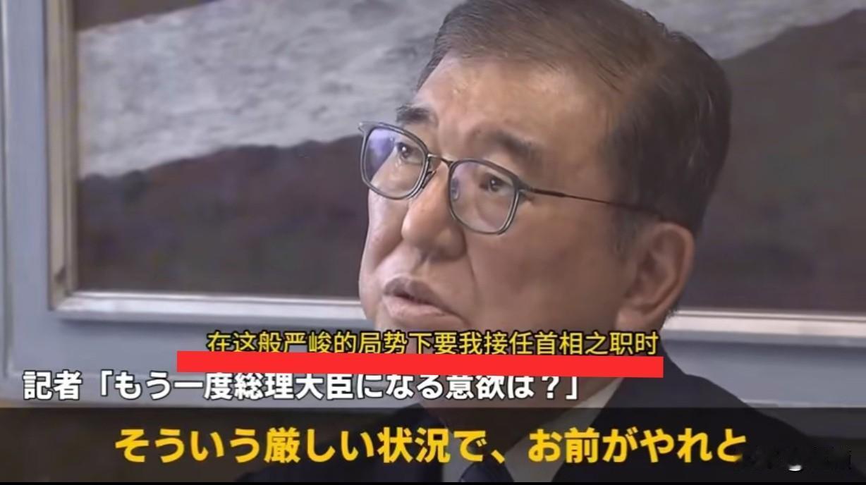 老石是不是有点装…… 记者:“您还有再次担任首相的意愿吗?” 石破茂:“当我再次出任首相之时,必是四海不宁之秋。在这种严峻形势下,若被众人推举却说'我做不到',实在说不过去。” 这是要挽狂澜于既倒扶大厦于将傾啊!还是要当裱糊家?