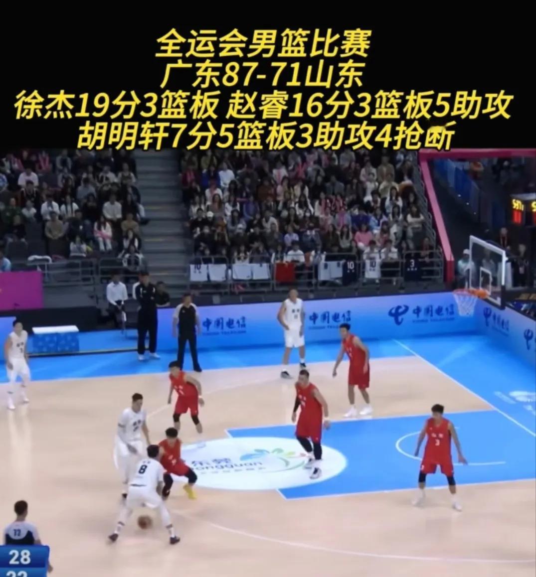 广东全运队首场小组赛87-71击败山东,夺金路上迈出坚实一步。 上半场球员们比较兴奋,想一举击溃对手,三分,罚球都是一般般。其实山东队实力不弱,陶汉林更是有如战神附体,所以比分拉不开。 广东队胜在打球的人多,所谓替补也是主力,所以杜锋都能很牛逼的使用五上五下,场下还坐着刘传兴,李炎哲呢,放在其他球队都是妥妥的主力。 中场休息,杜锋说看你们打的,放松点,相信自己,下半场通过调整,阵容微调,下面就打得得心应手了。 分差不多,首场比赛嘛,球员们都要有一个适应过程,正式比赛的配合,所以要求不要太高。 徐杰19分,手感一旦来就是无敌。