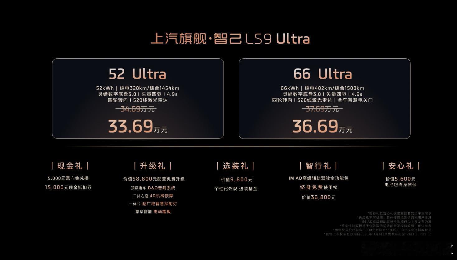 11月4日,上汽旗舰·智己LS9正式开启预售。首发两个增程版本,52Ultra