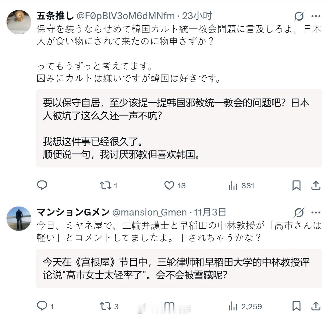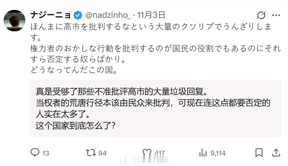 日本网友在X上吐槽,现在只要一在网上批评日本高市早苗当局,就会被问“你是中国人吗”。