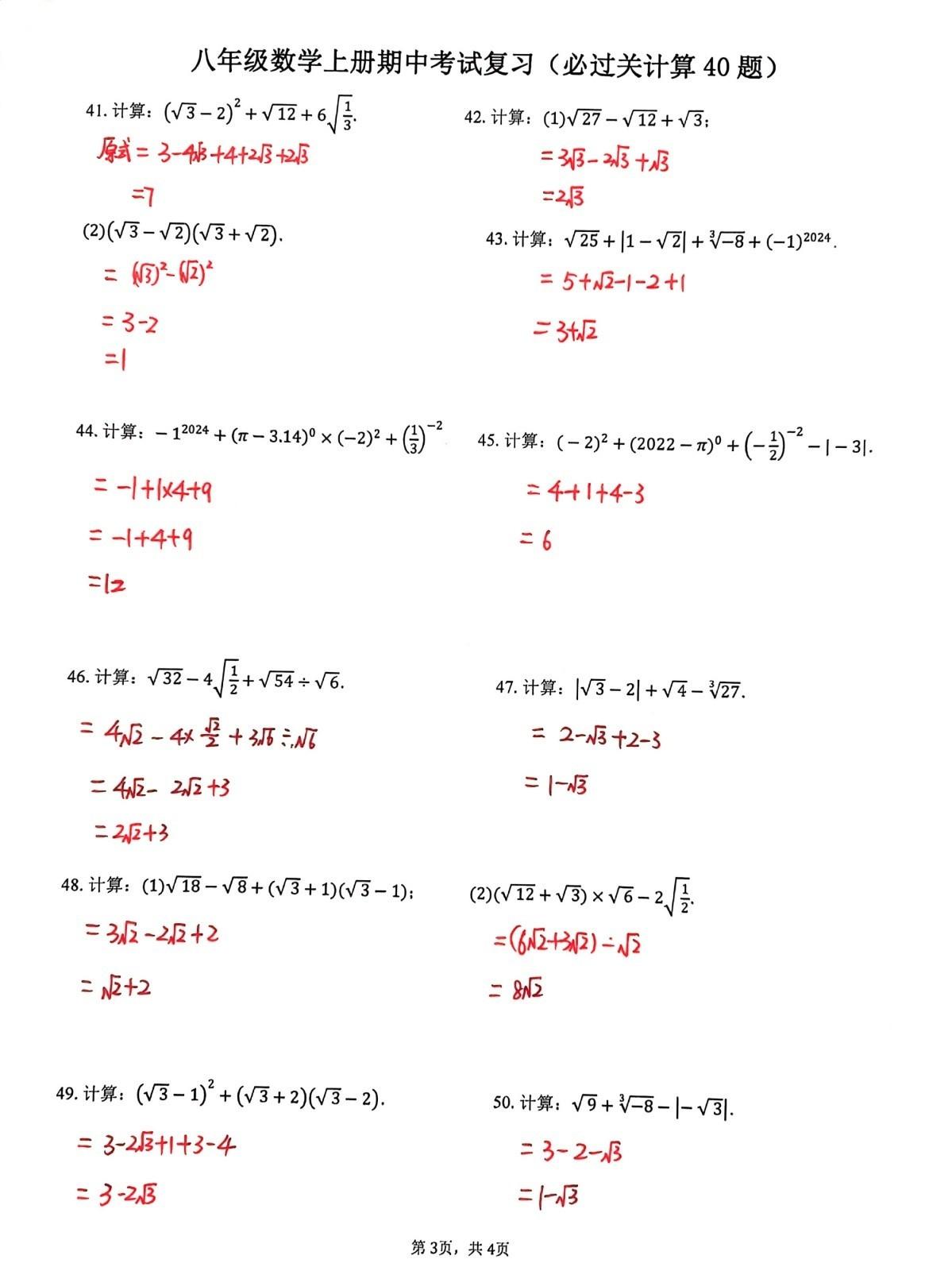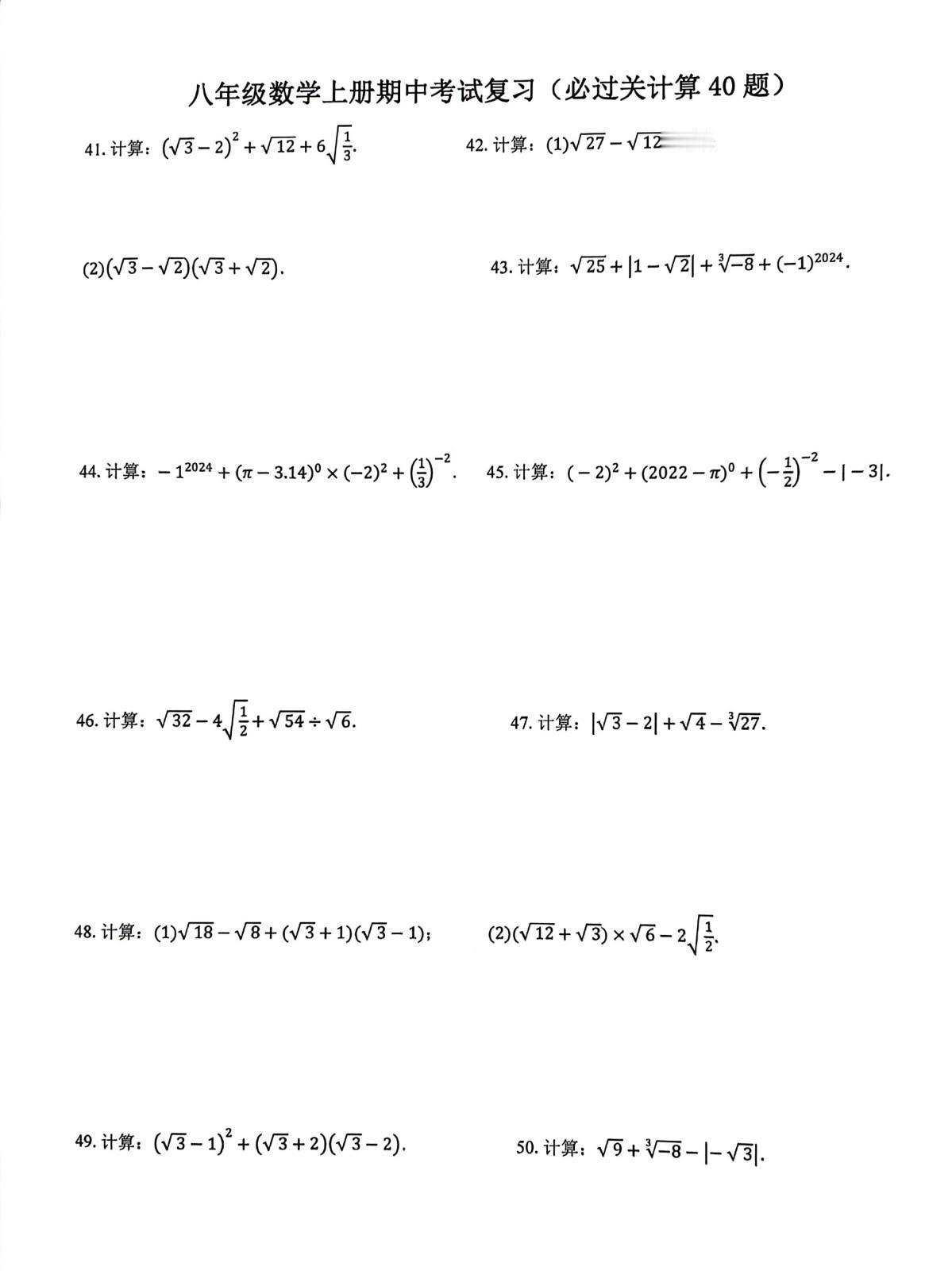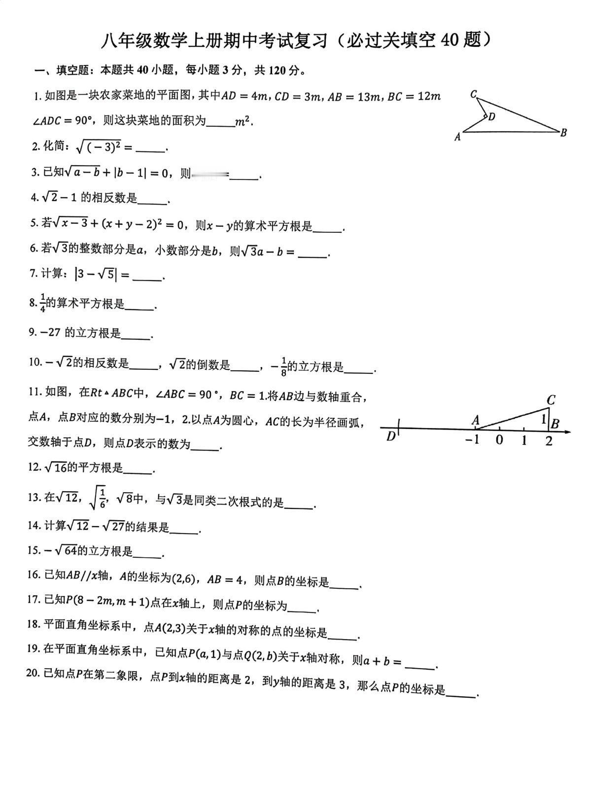 途虫数学精品数学试卷分享,数学基础差,就弄懂这40道填空题和40道计算题,北师大版初中数学上册其中考试的基本考点都在这里了,对于基础薄弱的学生,这样的试卷尤其重要。数学必练题 必会数学题 初中数学