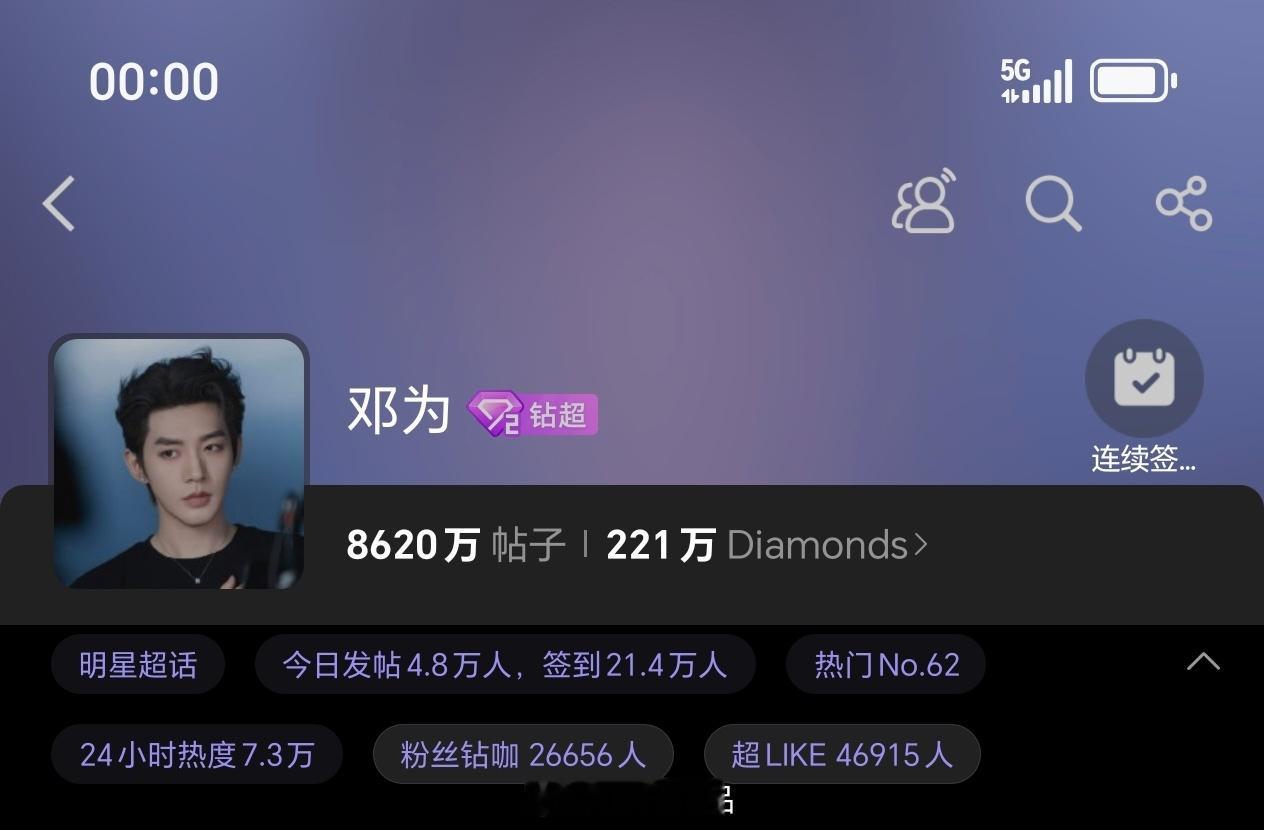 邓为昨日超话发帖4.8万,超like4.6万各项数据持续稳定输出,钻石牛掰,邓为