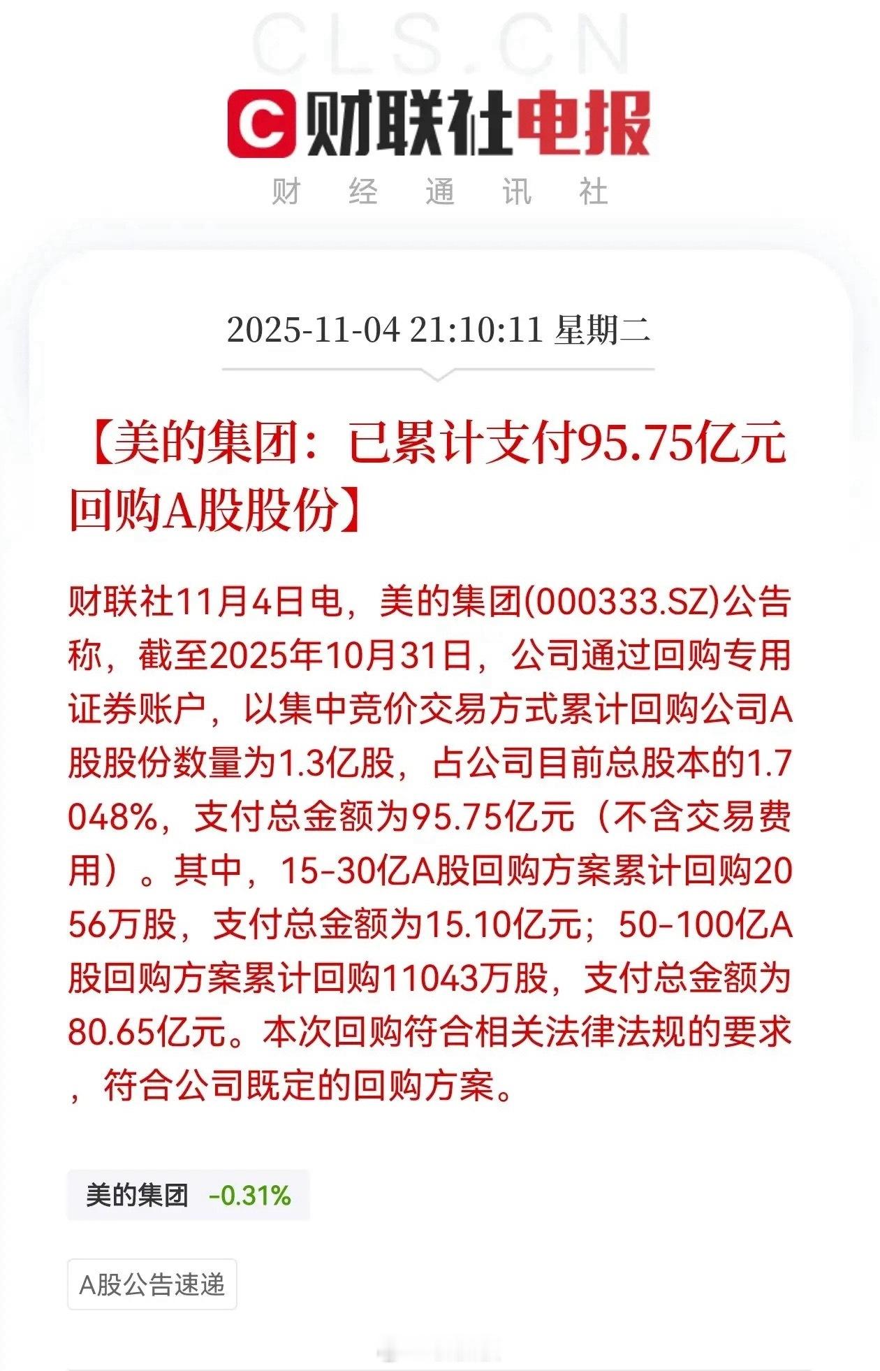 A股现在是越来越有信心了,美的集团斥资95亿元回购自己加的股票